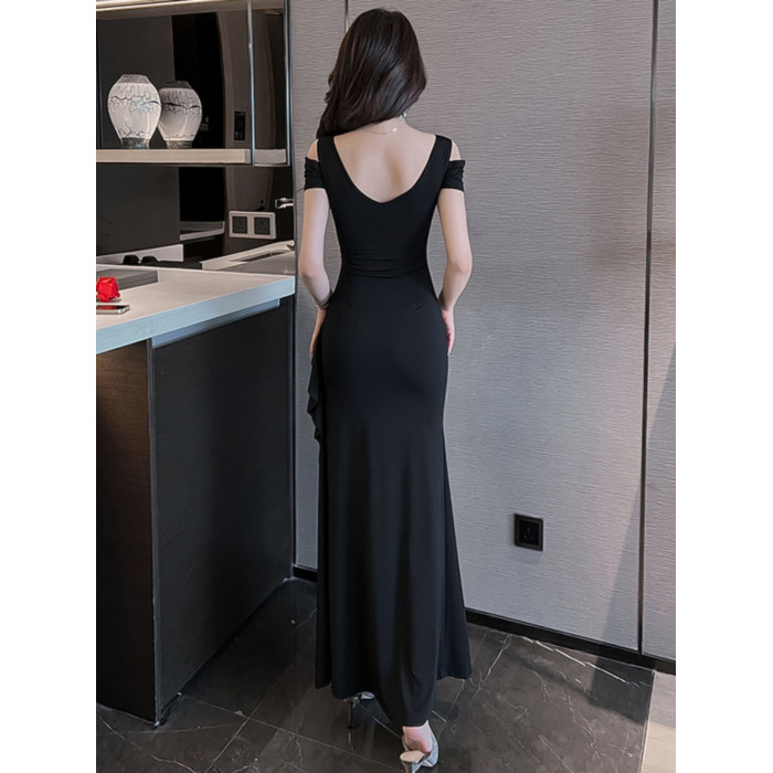 新款技師工作服足浴顯瘦禮服氣質性感夜店女裝佳麗長裙包臀連衣裙