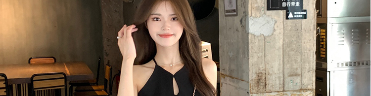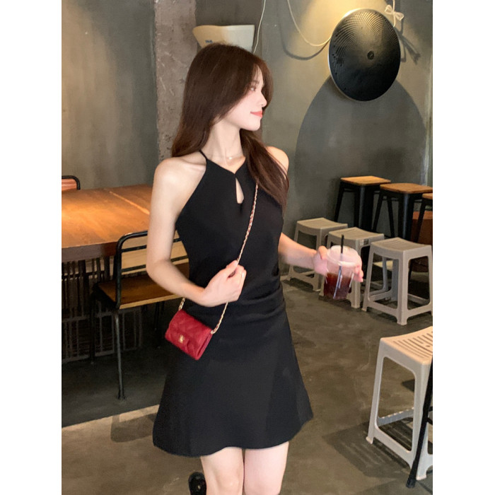 掛脖吊帶連衣裙女春夏韓系小個子高級感名媛禮服短裙赫本風小黑裙