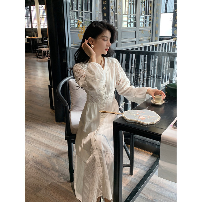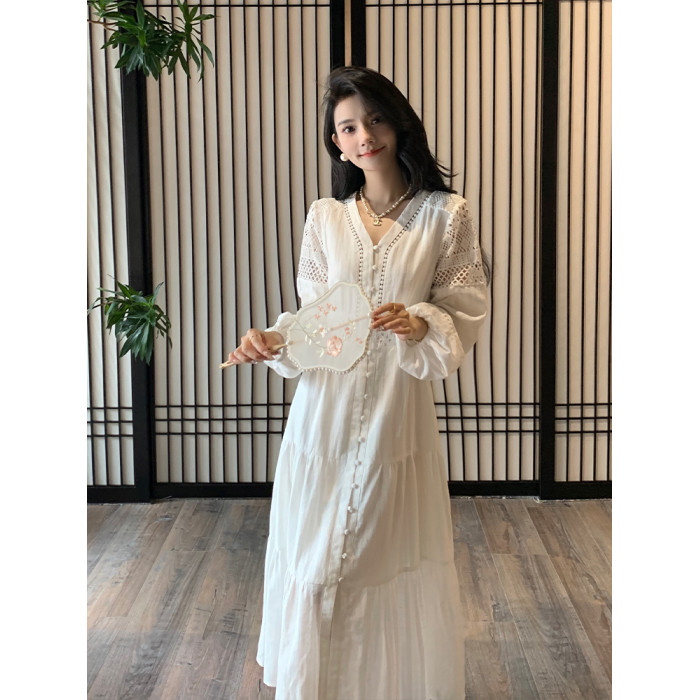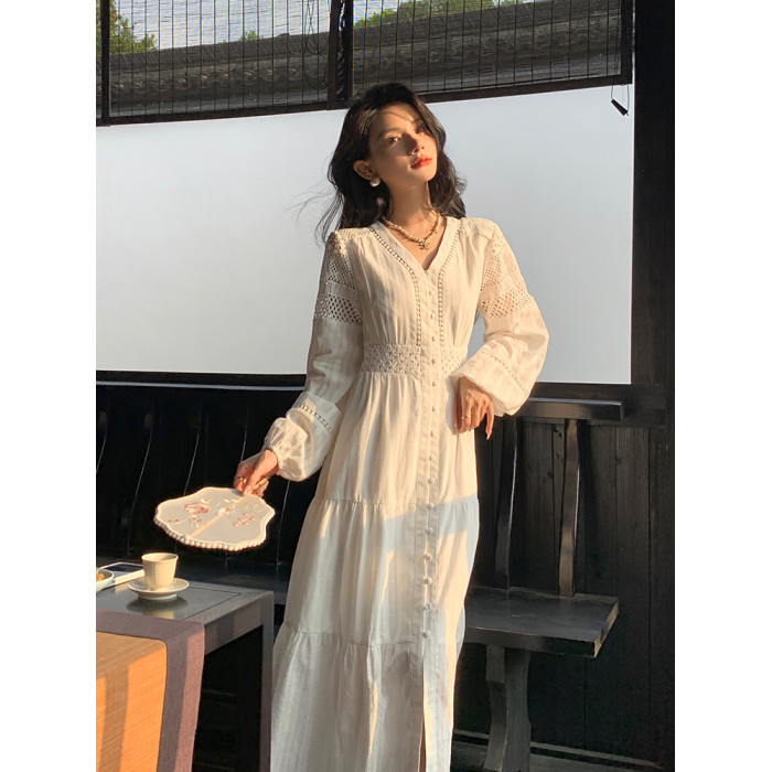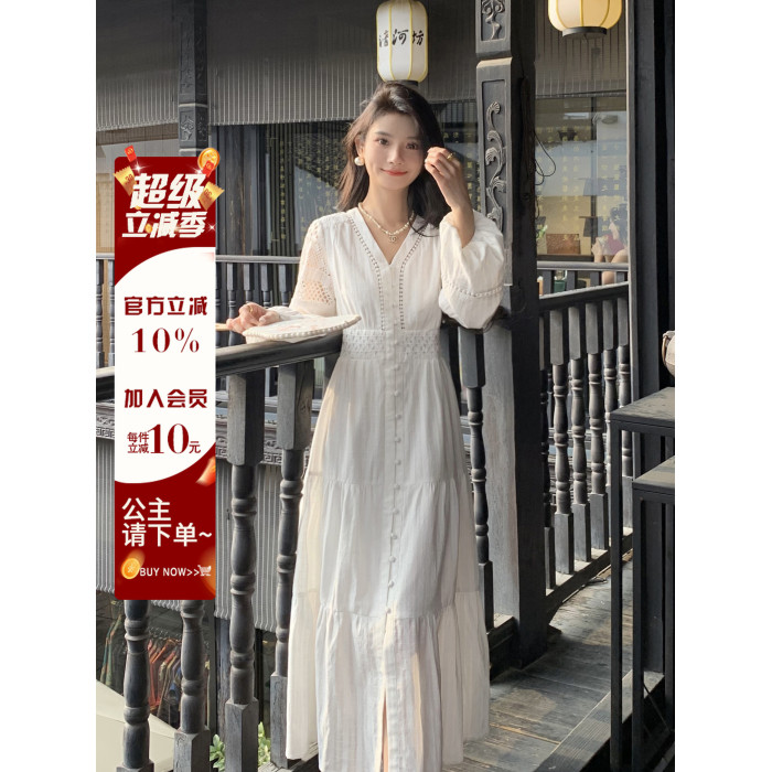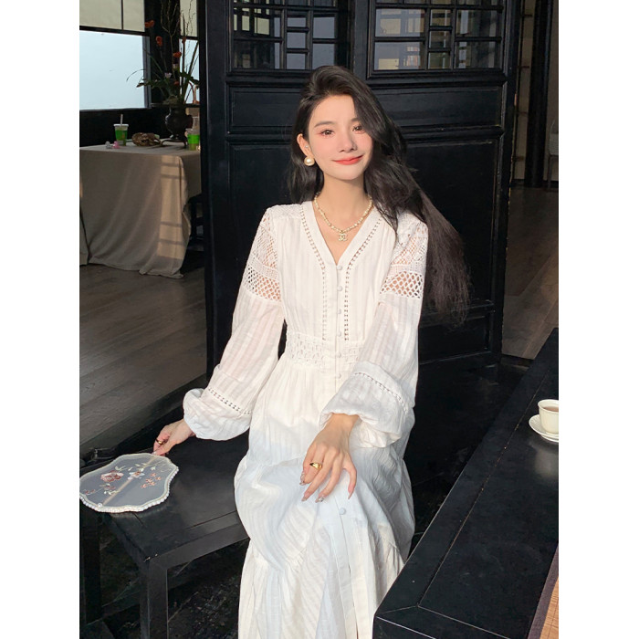 AM NANA秋冬法式打底連衣裙輕熟風氣質白色仙女裙顯瘦內搭長裙子