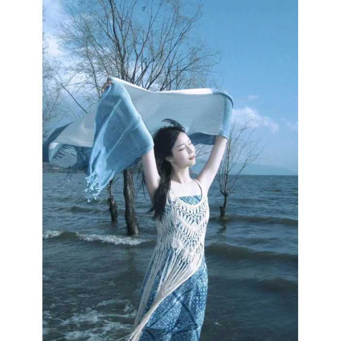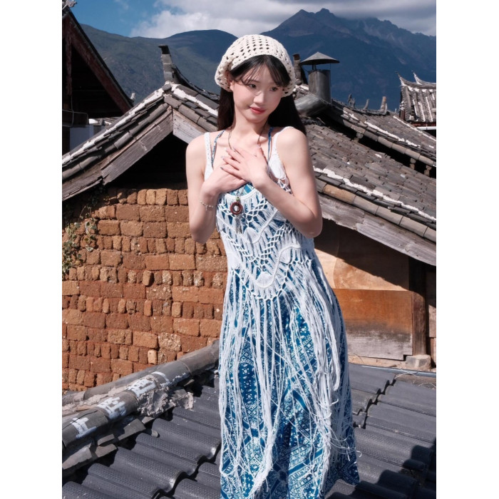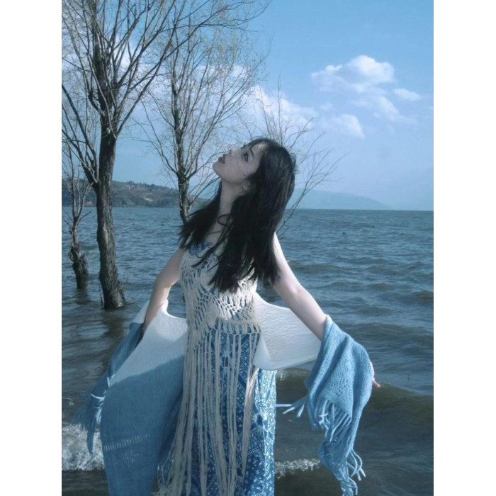 雲南大理洱海新疆旅遊拍照多巴胺穿搭女裝一整套民族風沙灘連衣裙