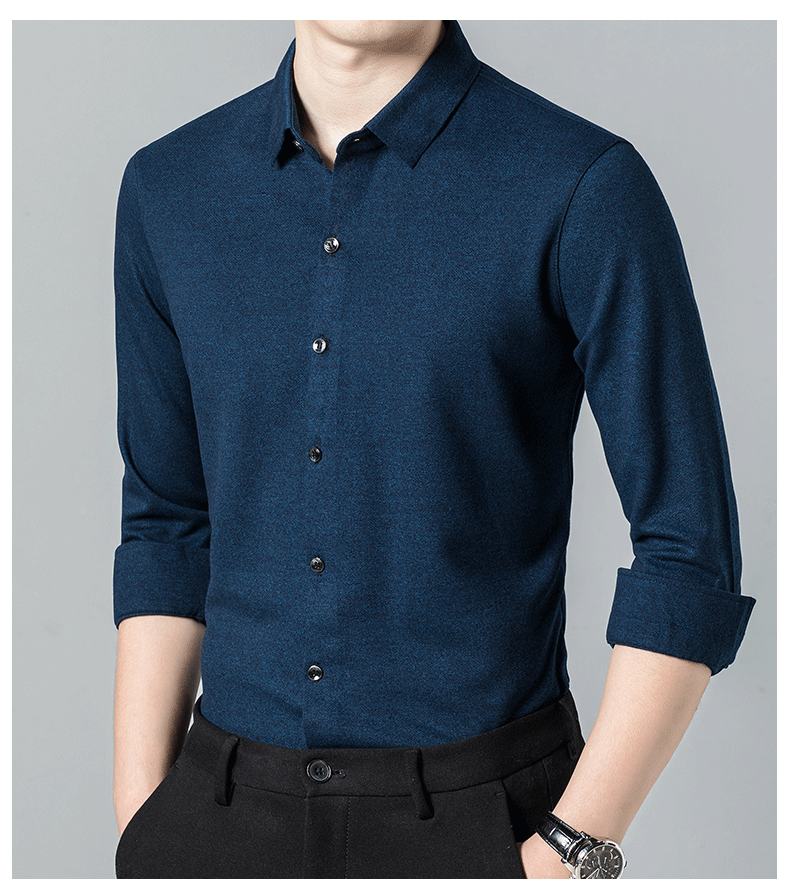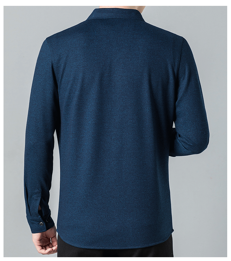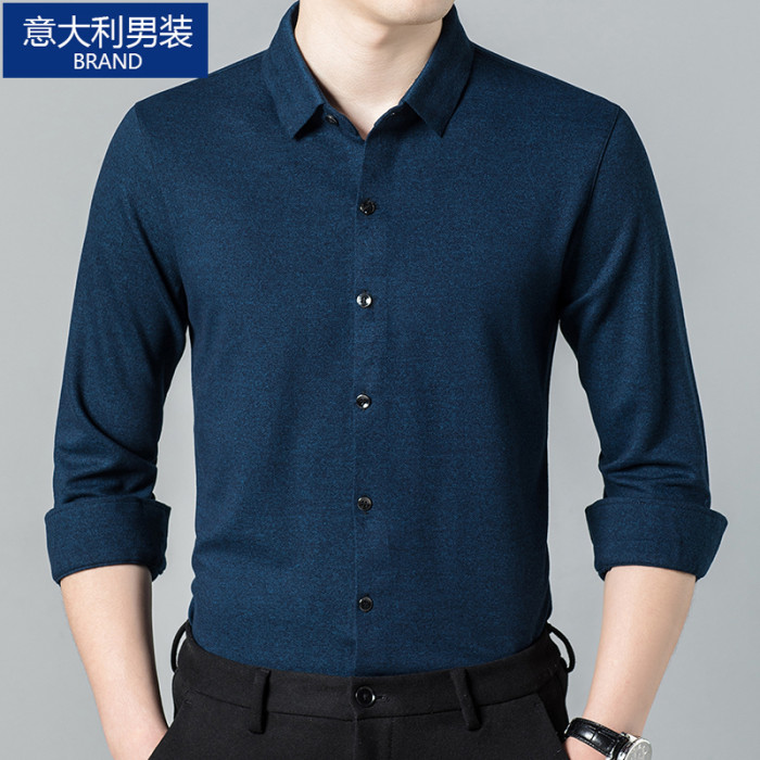 意大利品牌純色羊絨襯衫男春秋季新款抗皺抗磨打底衫中老年人長袖