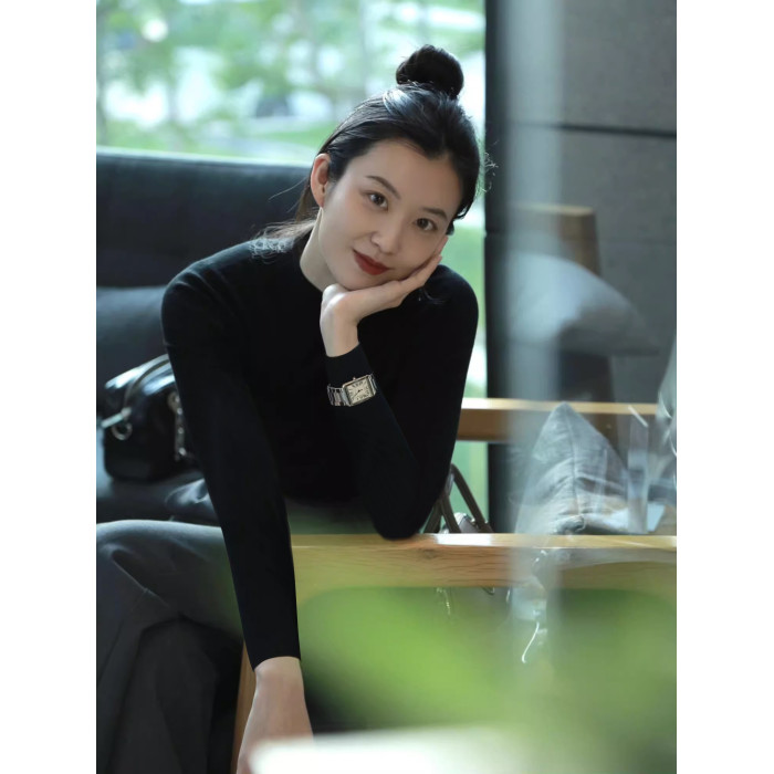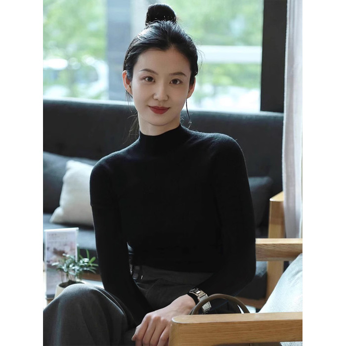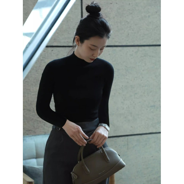 阿瓦薩AWASA 法式黑色半高領打底衫女秋冬內搭正肩針織衫修身毛衣