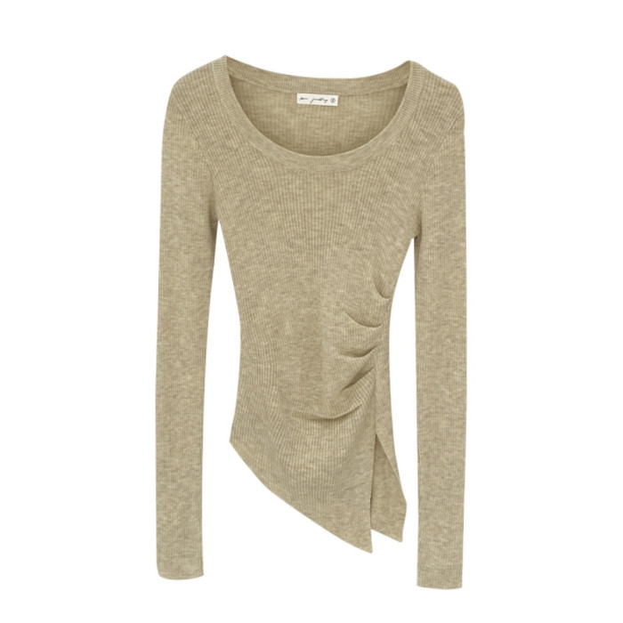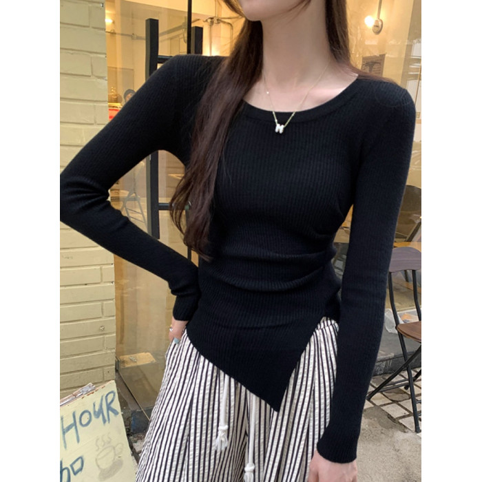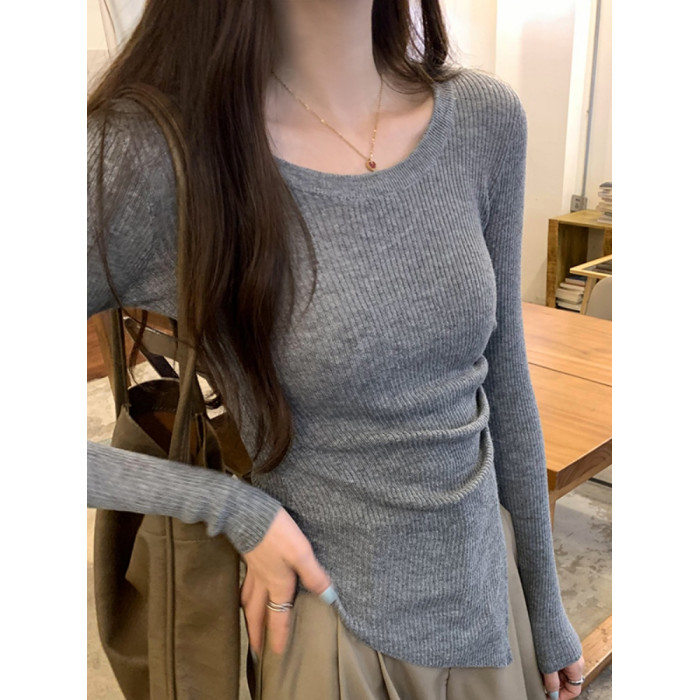 別致圓領修身內搭打底衫女秋冬新款高級感入秋韓系穿搭針織衫上衣