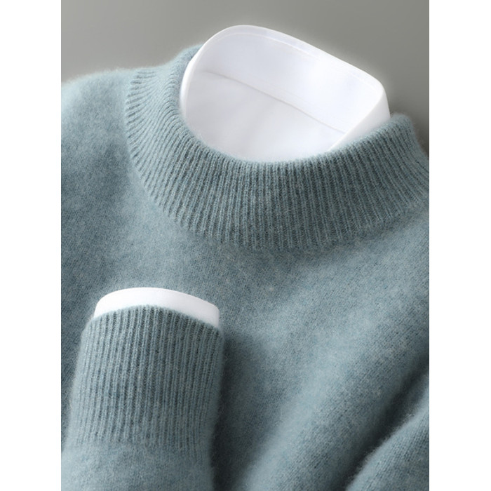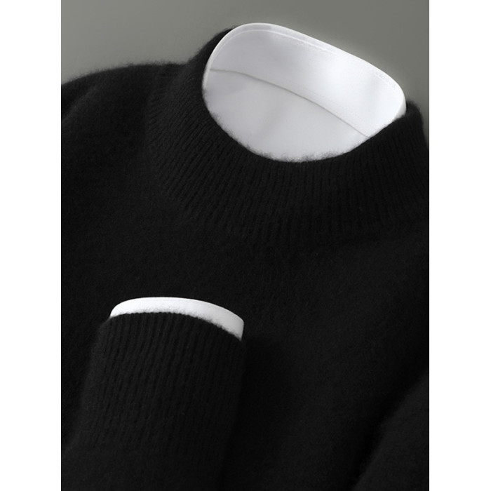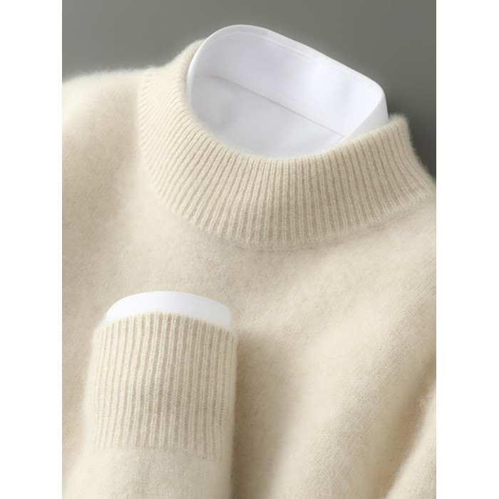 100%純羊毛衫男一線成衣半高領加厚針織毛衣寬松羊毛衫無縫打底衫
