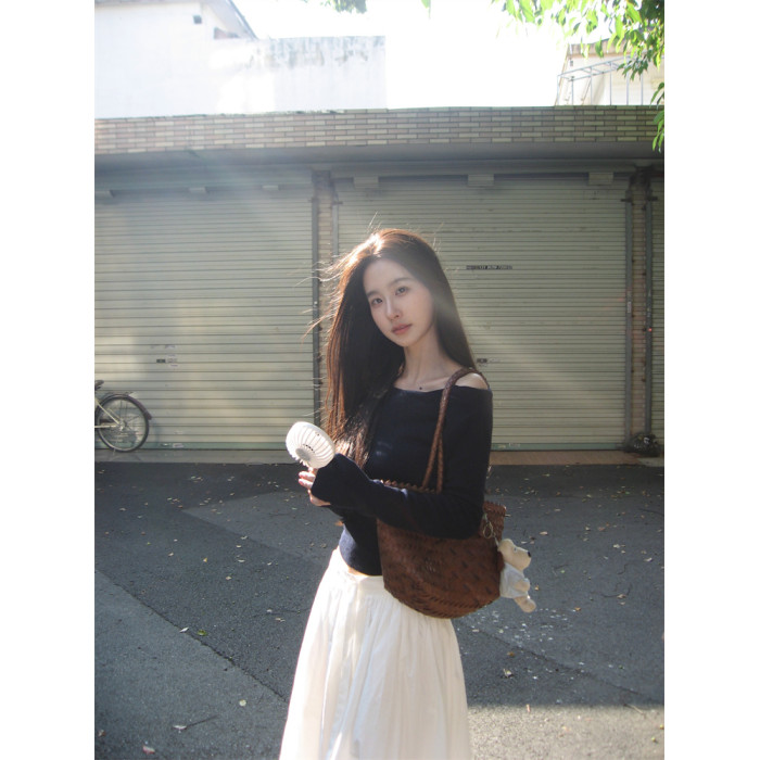 韓系慵懶風一字肩針織衫毛衣女秋季2025新款高級感打底衫早秋上衣