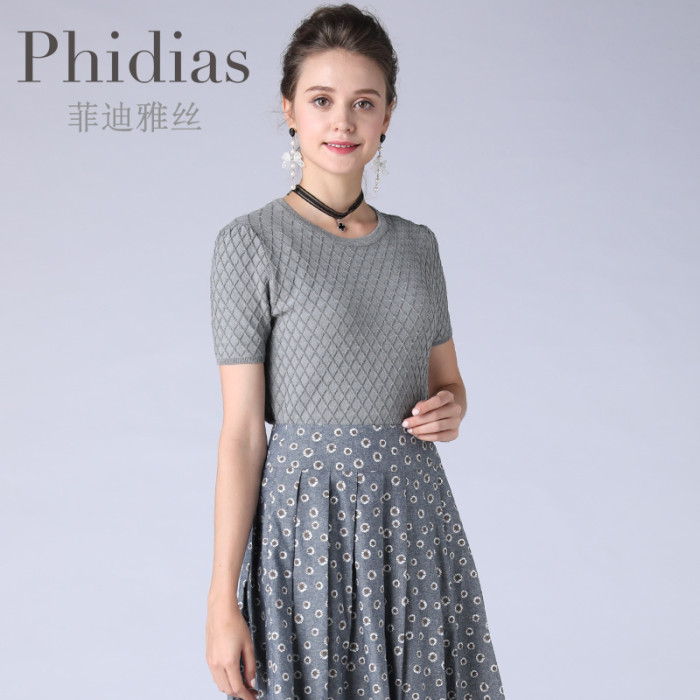 Phidias毛衣女薄款夏季新款修身打底衫女短袖針織衫內搭上衣