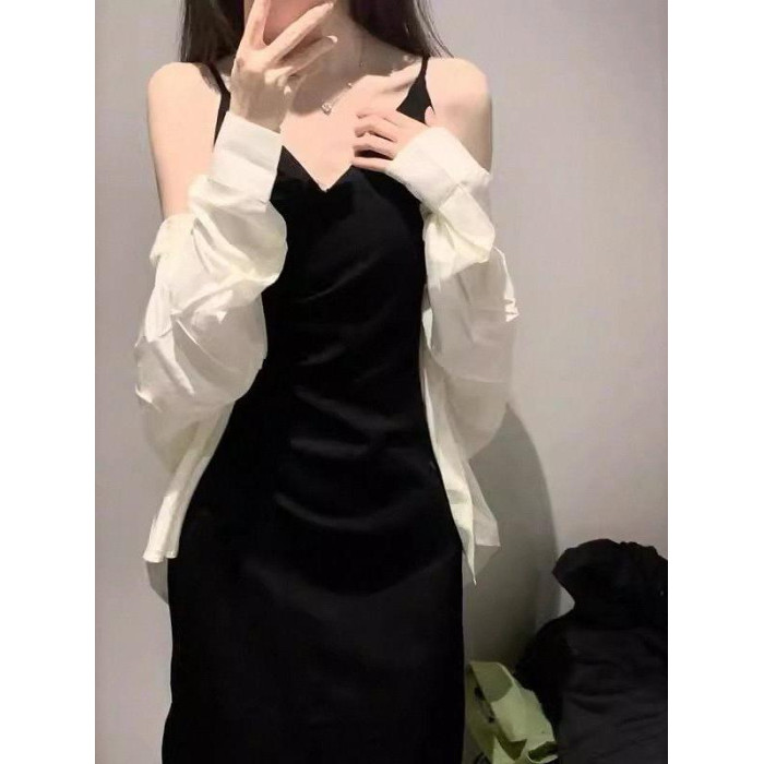 赫本法式聚會晚禮服連衣裙女裝夏季風小黑禦姐輕熟感吊帶裙子