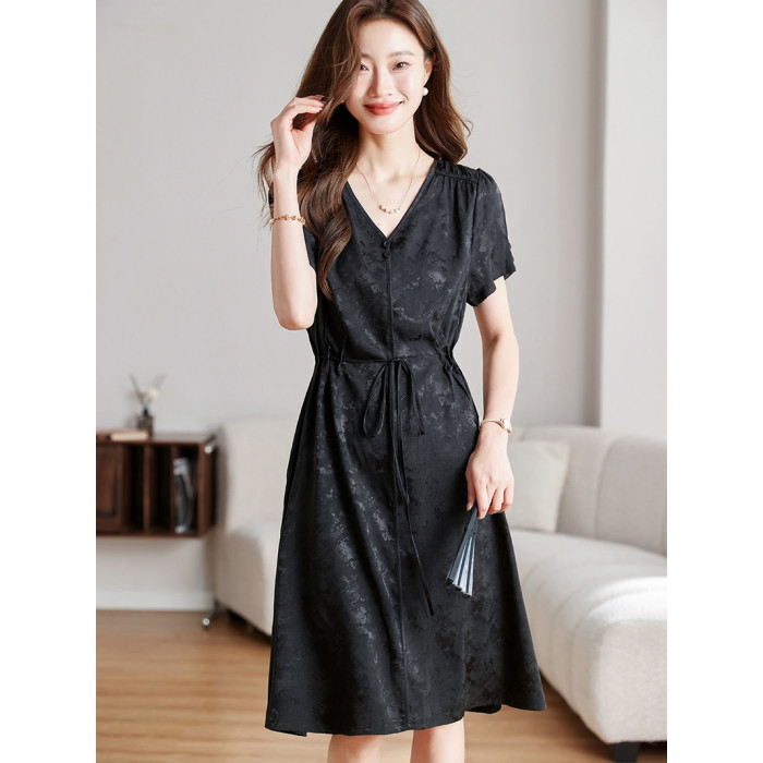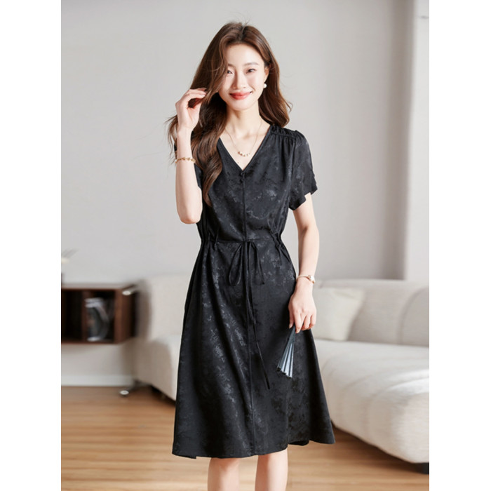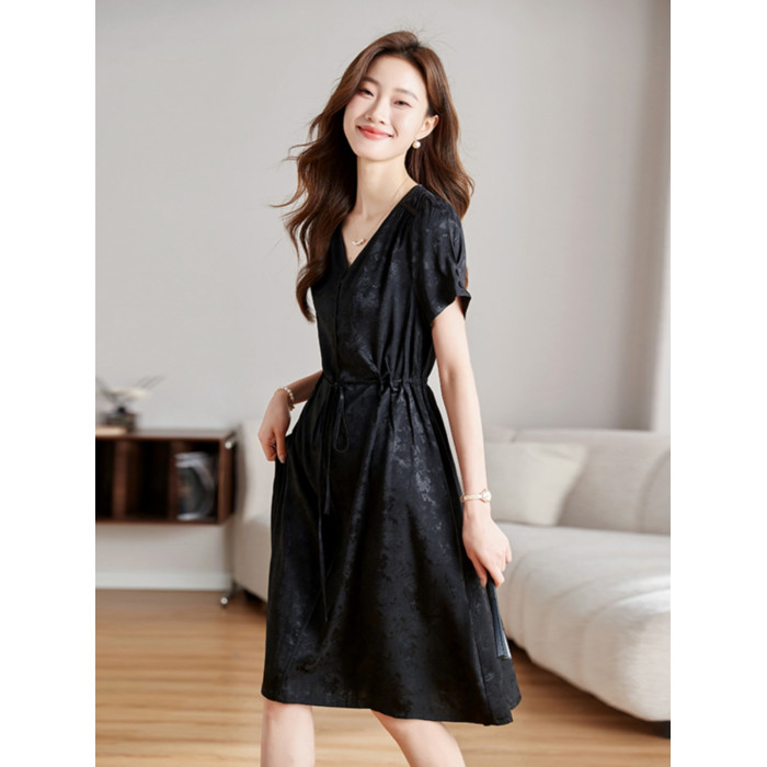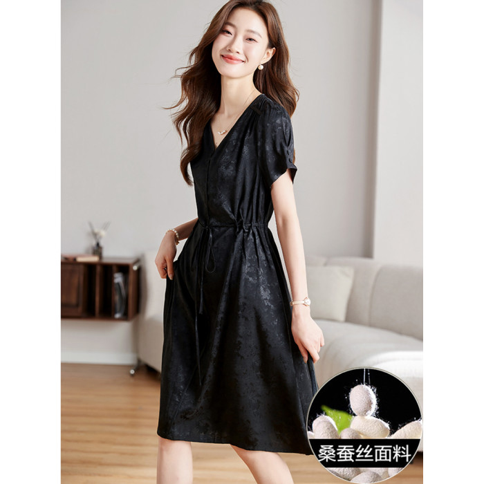 國際大牌黑色真絲連衣裙女2025新款今年流行爆款夏季桑蠶絲裙子
