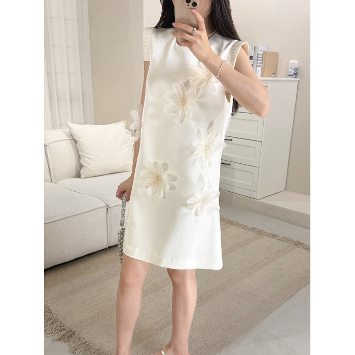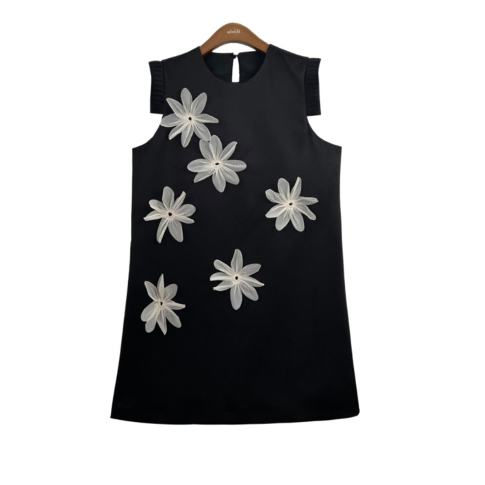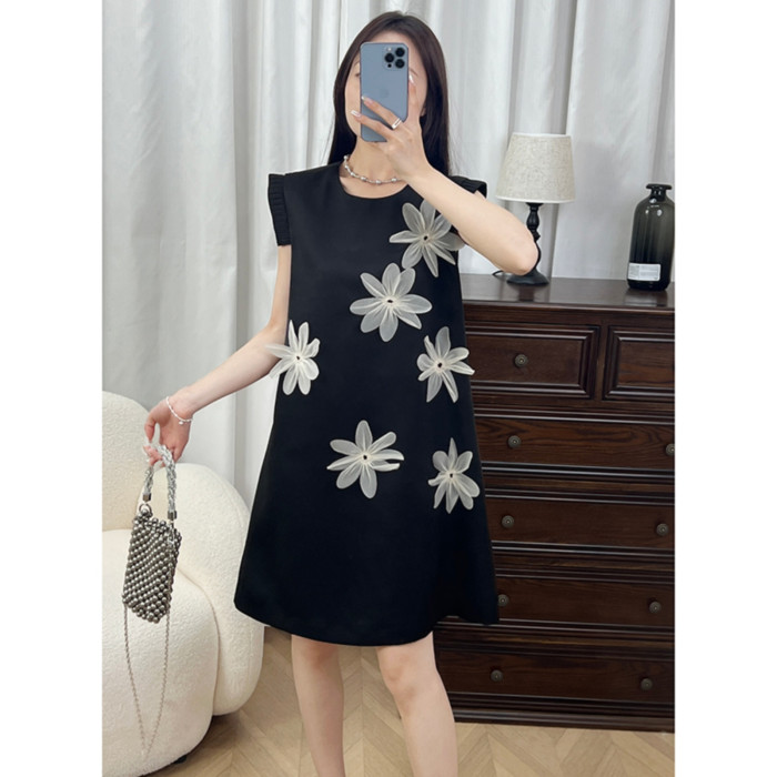 立體花朵氣質連衣裙2025夏季女新款淑女無袖名媛女神範高級感裙子