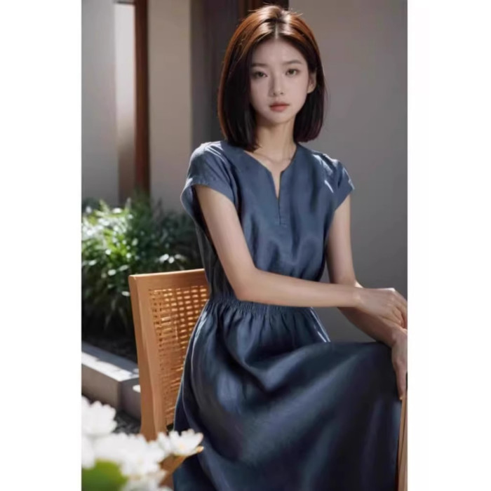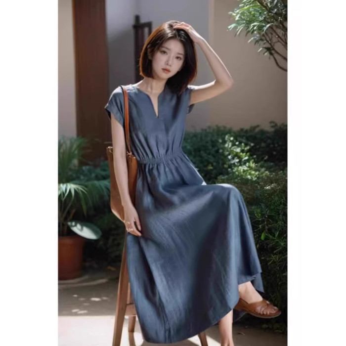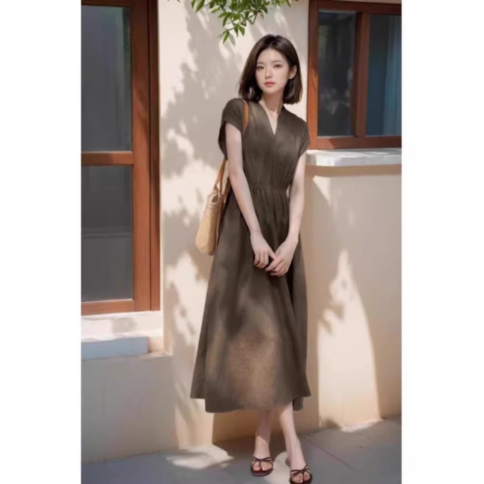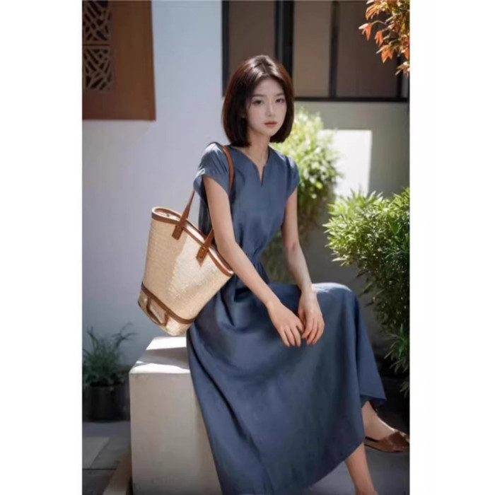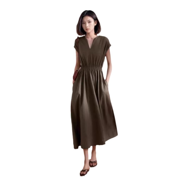 歐洲站2025新款法式高級感過膝長裙高冷禦姐風氣質顯瘦連衣裙女夏