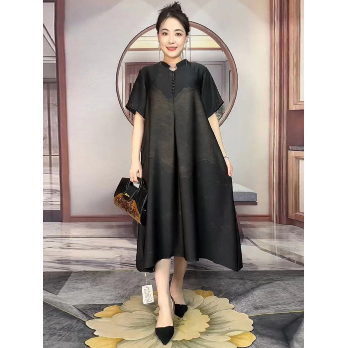 lemon丨日系水墨花荷葉邊假兩件拼接掐綁帶腰露肩收腰連衣裙