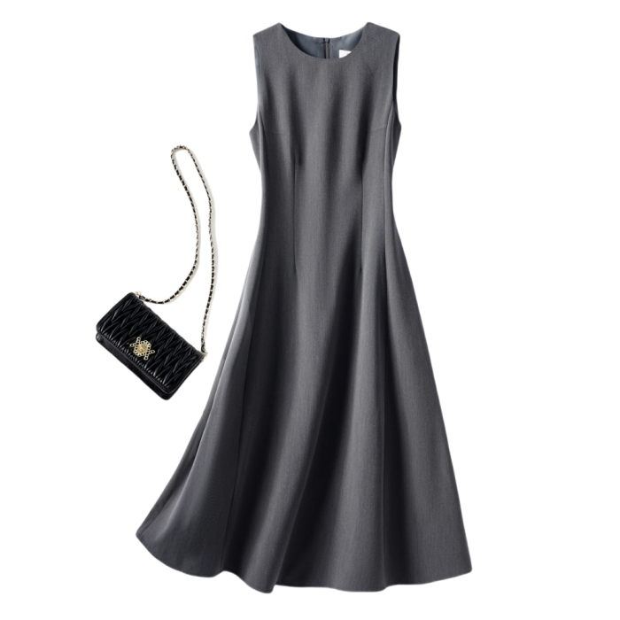 優雅氣質背心連衣裙女2025春夏新款高級感灰色無袖收腰中長a字裙