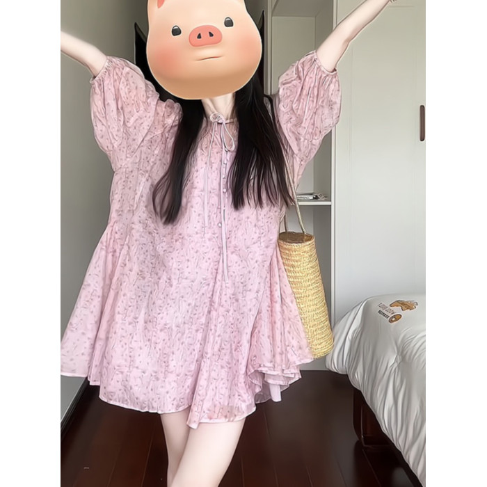 別致絕美氣質短裙女夏季2025新款小個子松弛感遮肉顯瘦粉色連衣裙