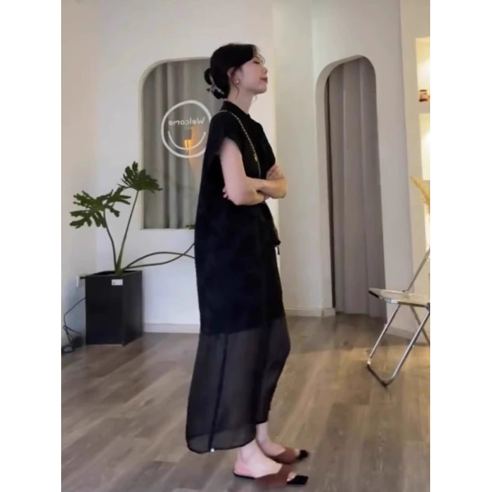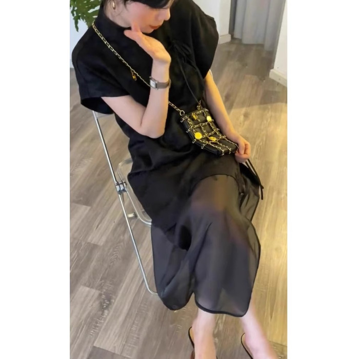XZOXZO2025新款新中式黑色連衣裙女夏季驚豔拼接小衆設計顯瘦裙子