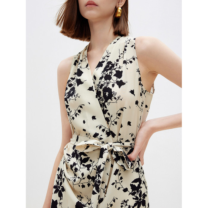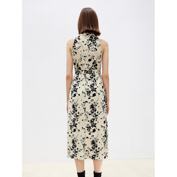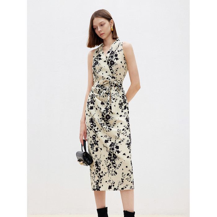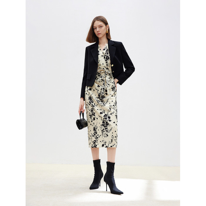 朗姿2025年春季新款設計感氣質長裙高級感收腰復古法式碎花連衣裙