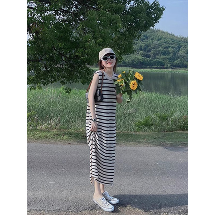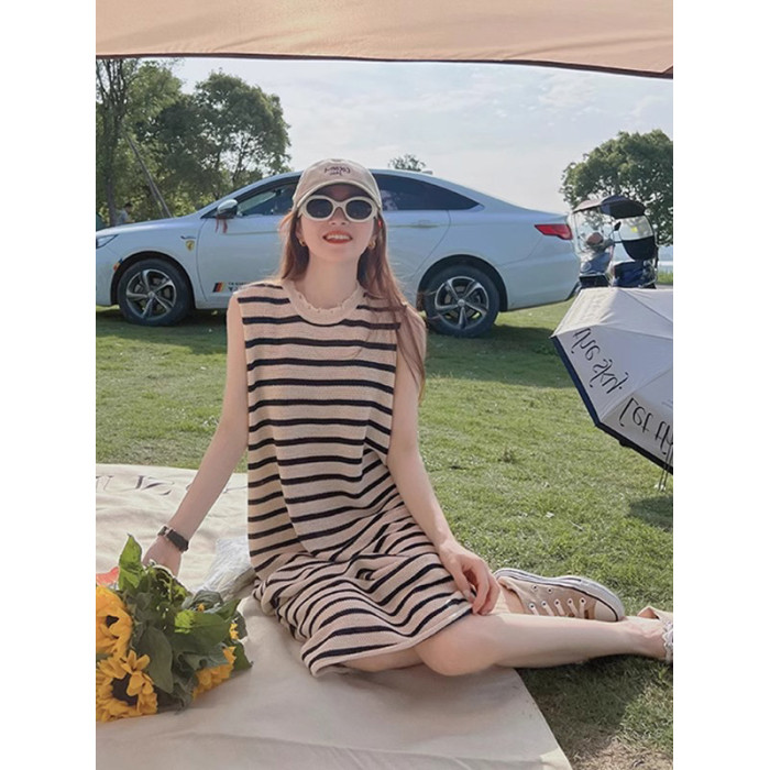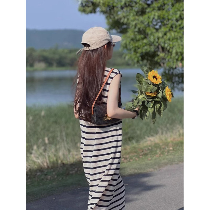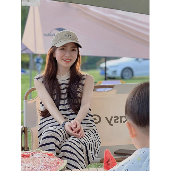 XZOXZO2025夏季新款溫柔風氣質初戀茶歇條紋背心連衣裙子法式設計