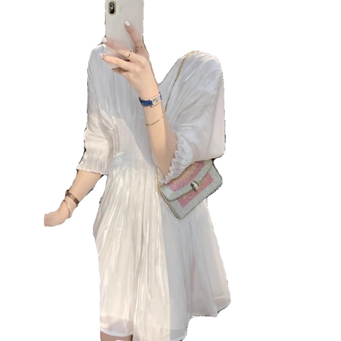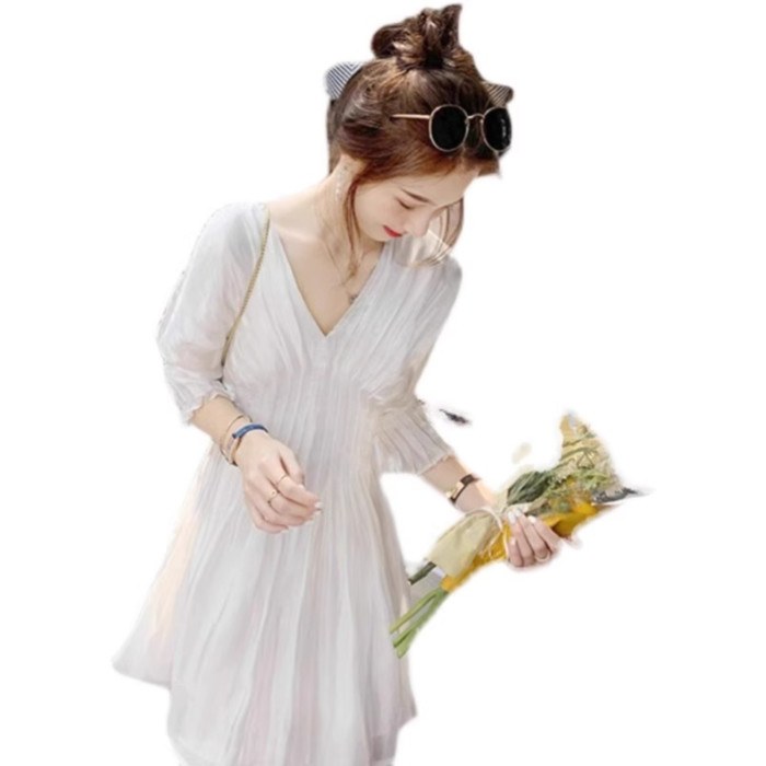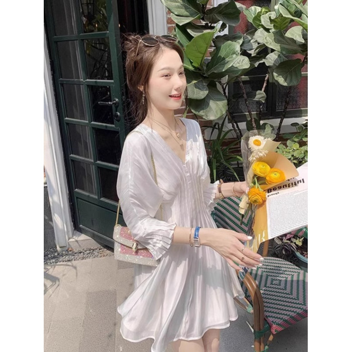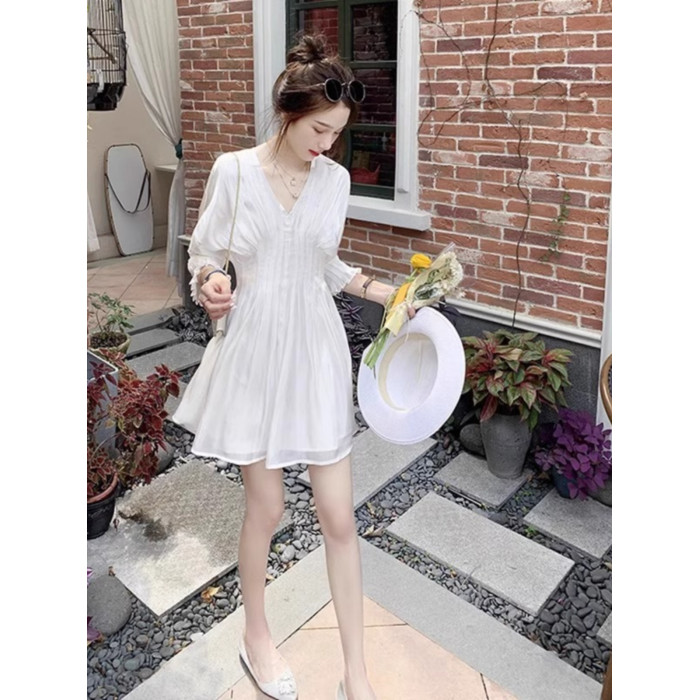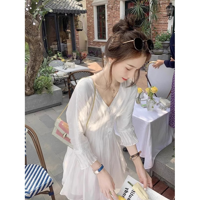 歐洲站2025新款仙氣超仙森系a字裙收腰顯瘦高級感白色連衣裙女夏