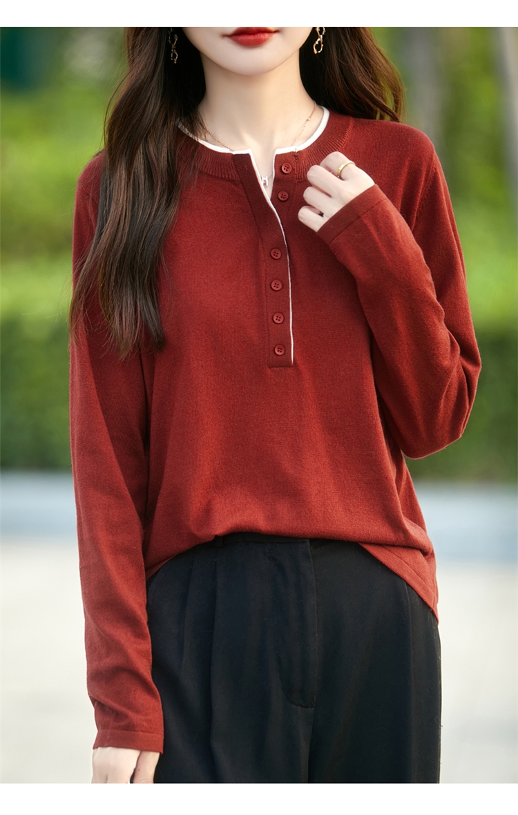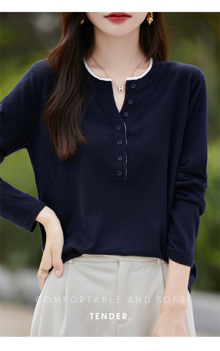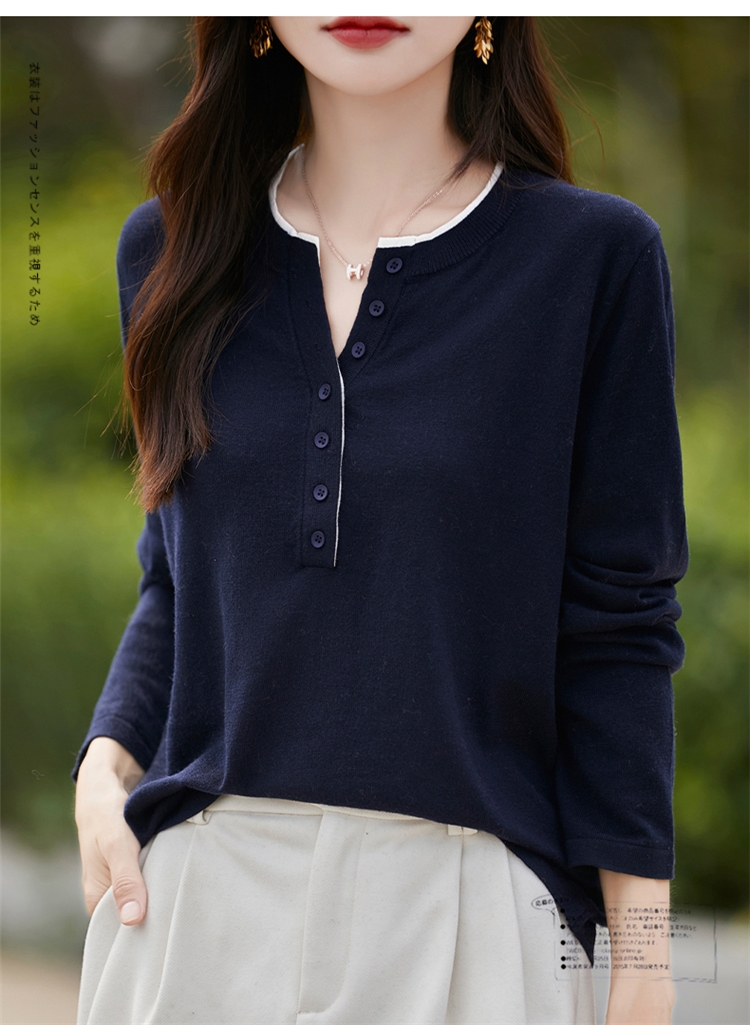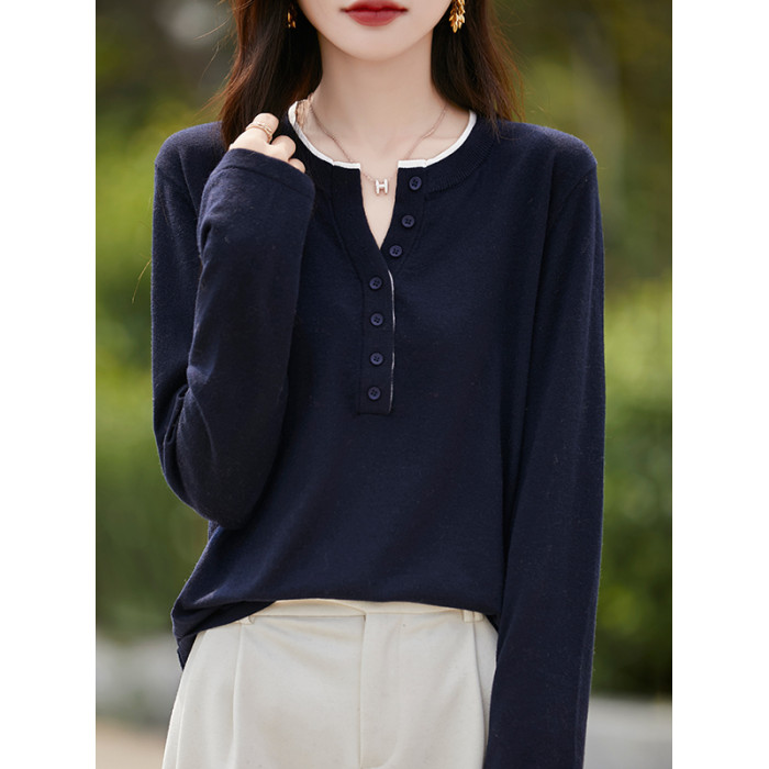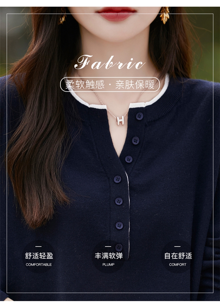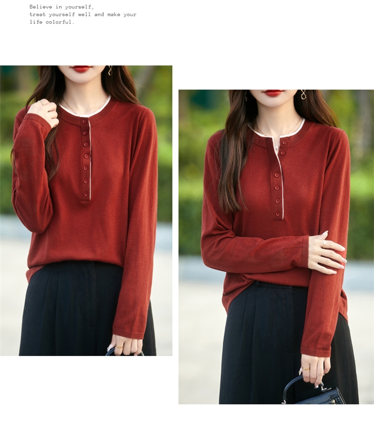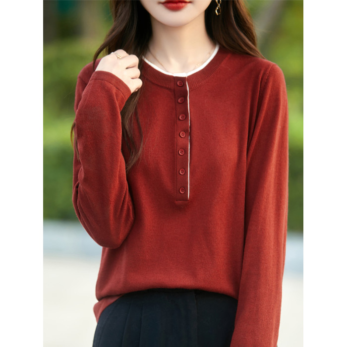 2025新款女春秋季外穿上衣套頭圓領撞色內搭針織衫休閒長袖打底衫