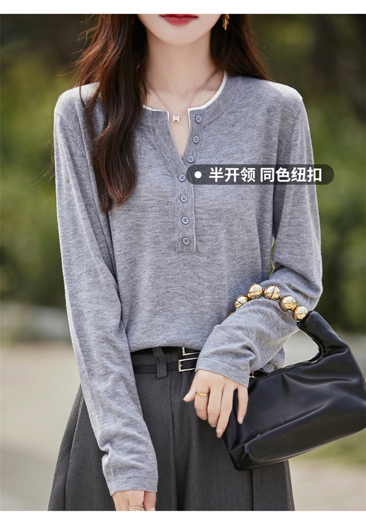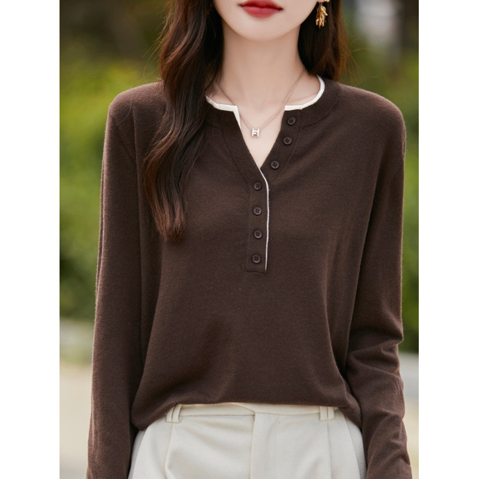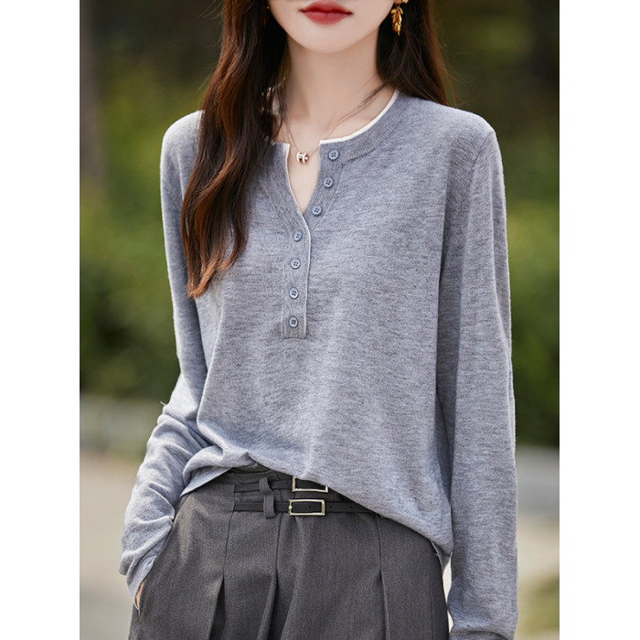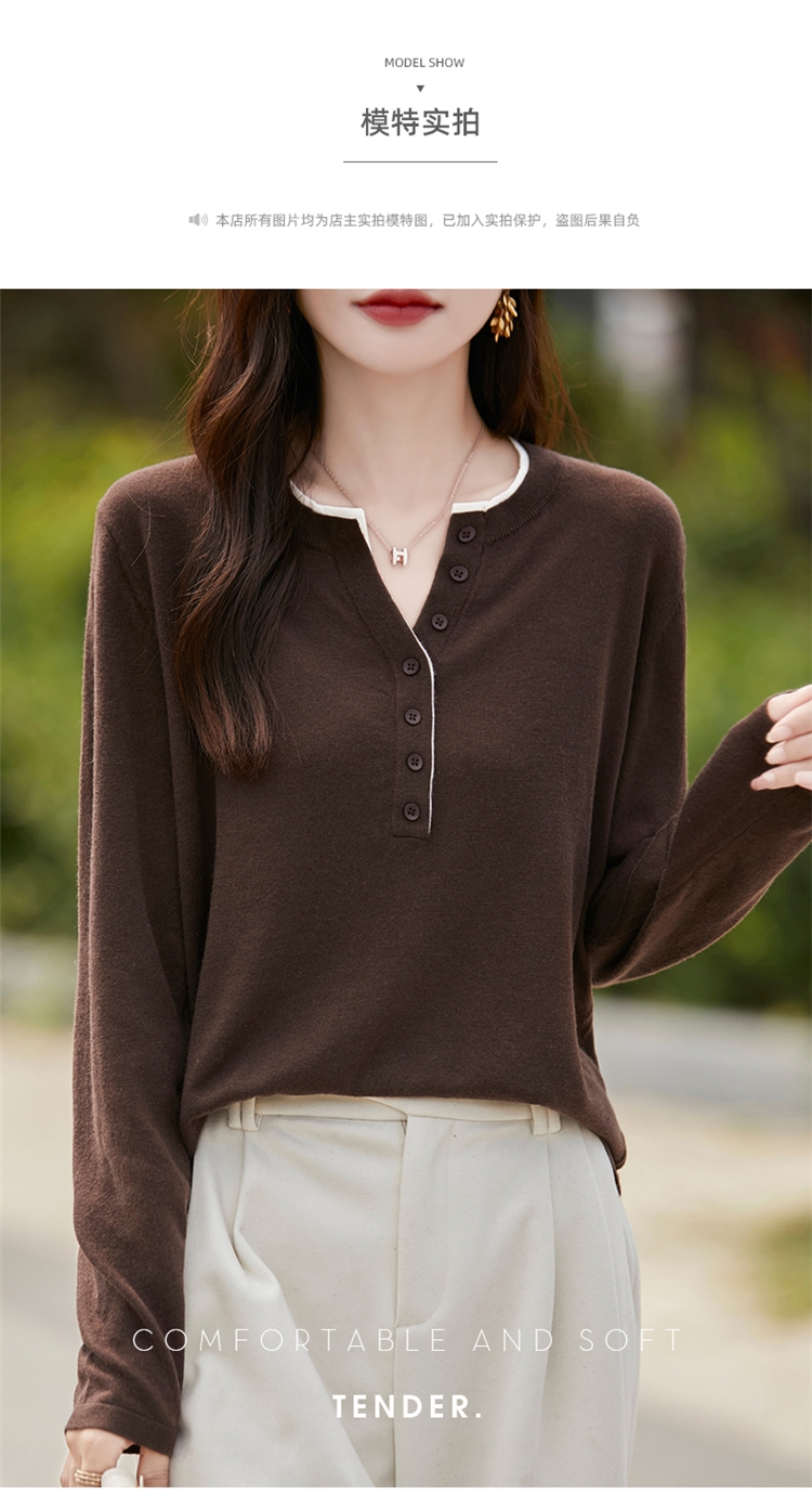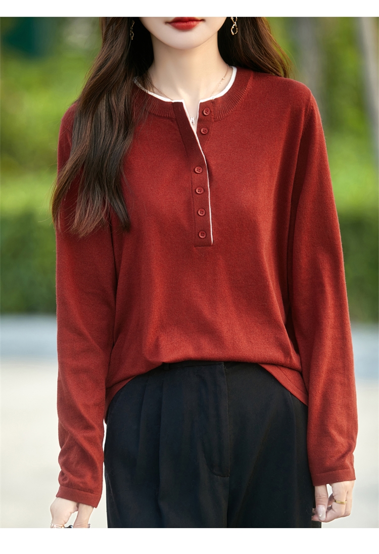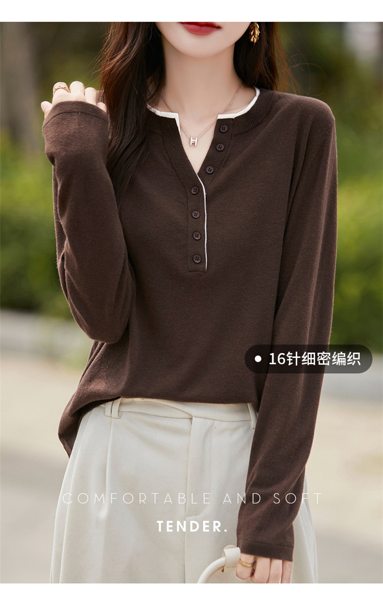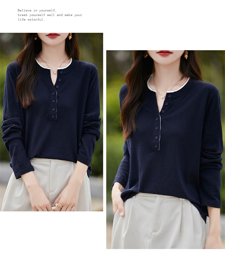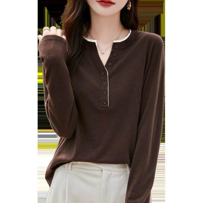 2025新款女春秋季外穿上衣套頭圓領撞色內搭針織衫休閒長袖打底衫