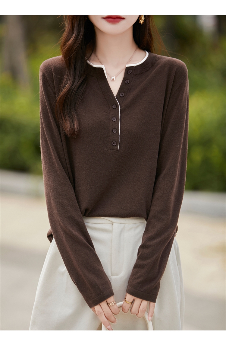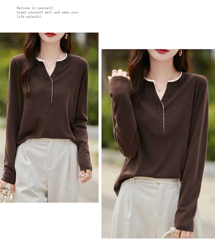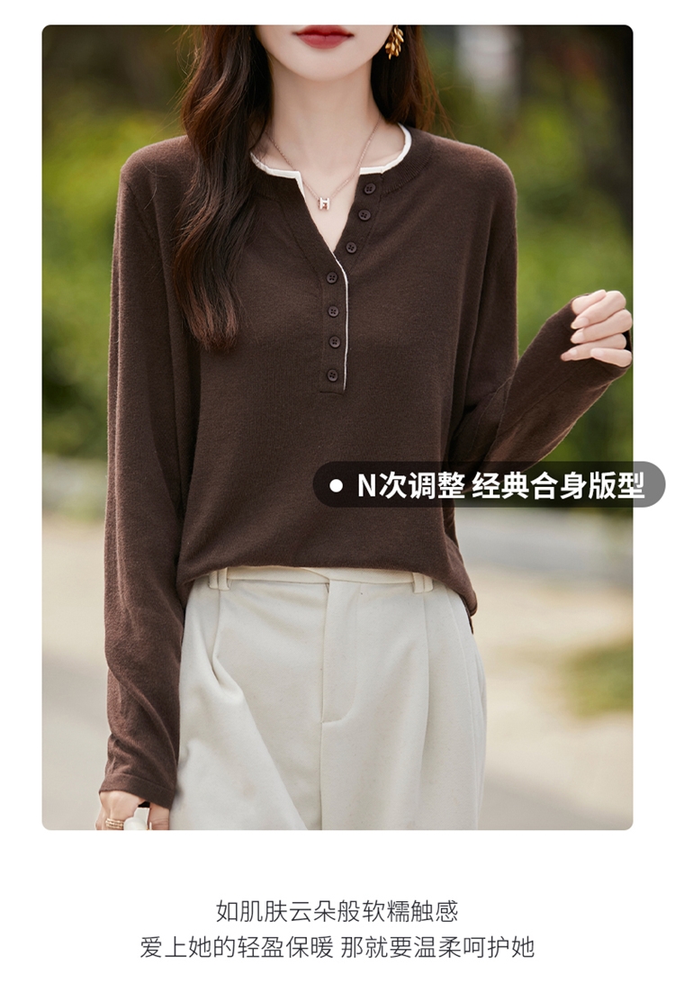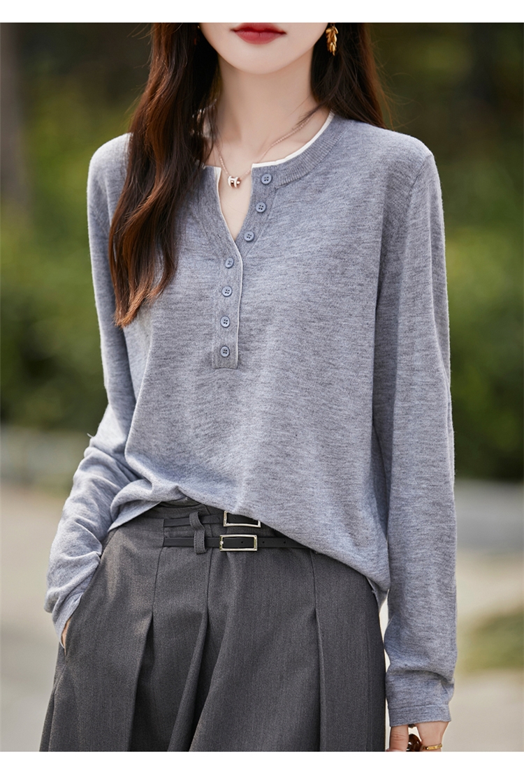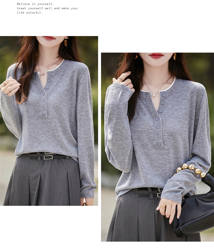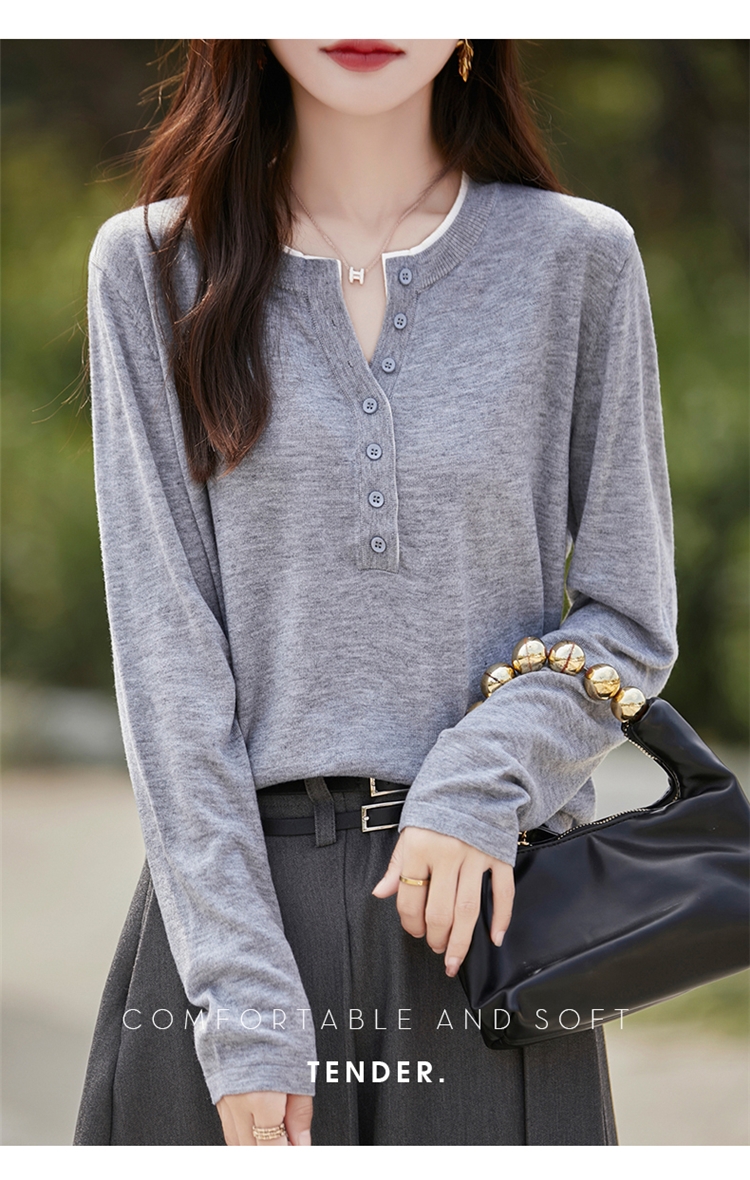 2025新款女春秋季外穿上衣套頭圓領撞色內搭針織衫休閒長袖打底衫