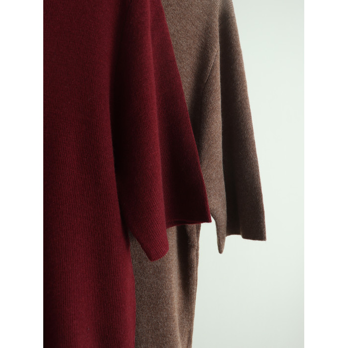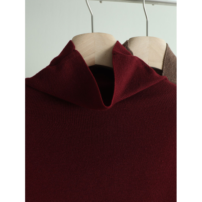 酒紅高領中袖打底衫女內搭修身堆堆領毛衣2025秋季新款短袖針織衫