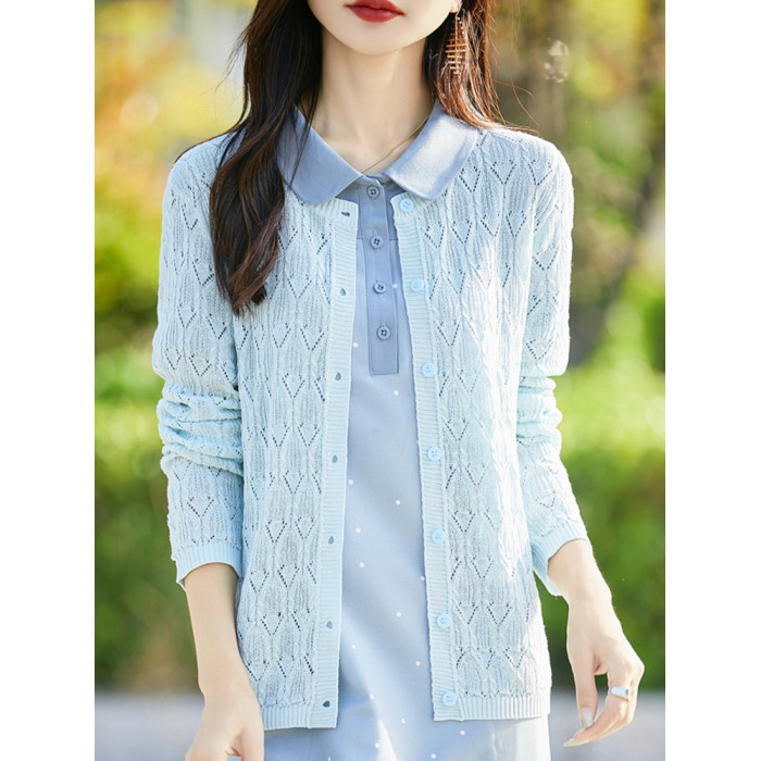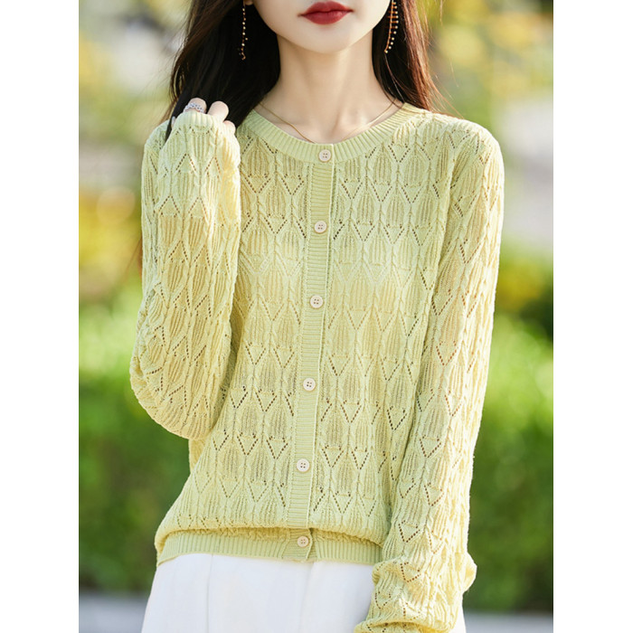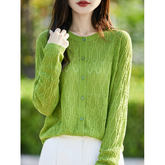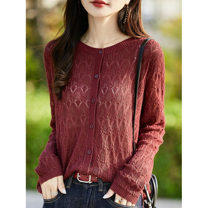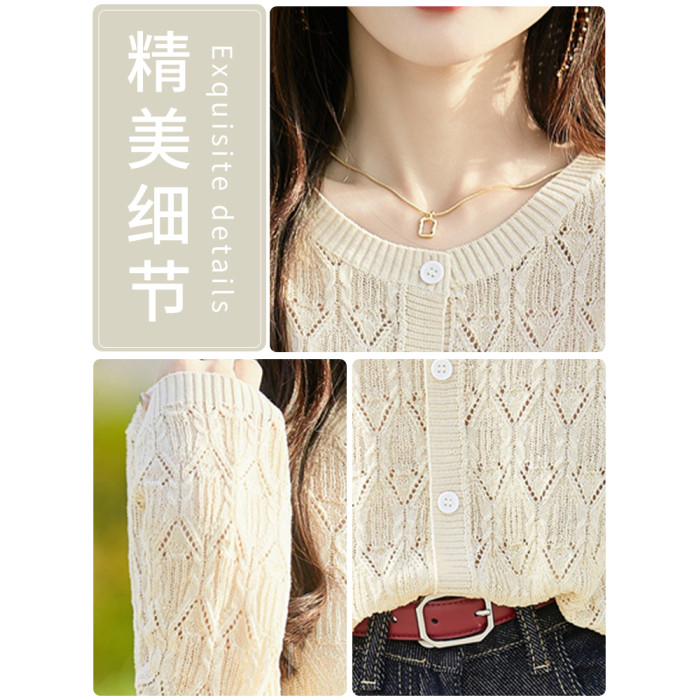 鏤空提花防曬開衫女夏季2025新款打底衫洋氣大碼女裝冰絲針織上衣