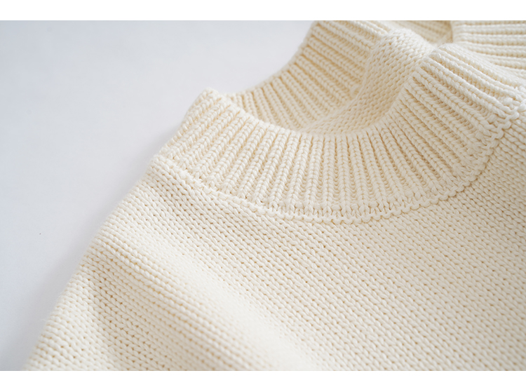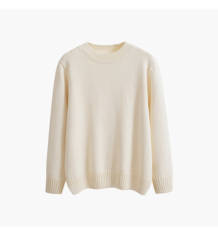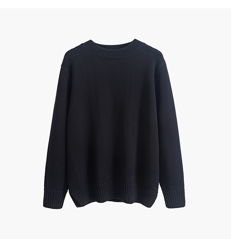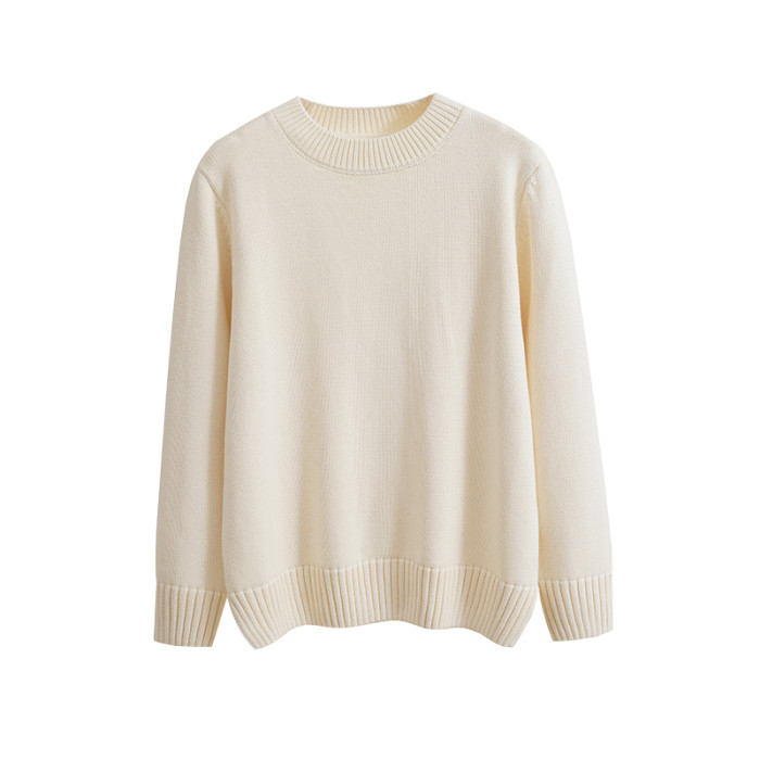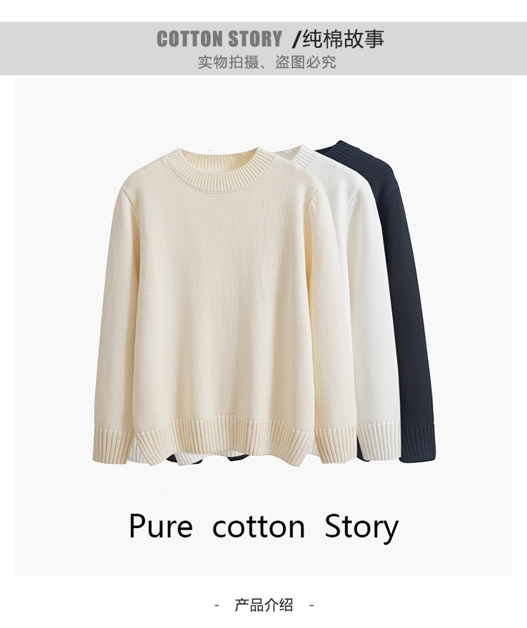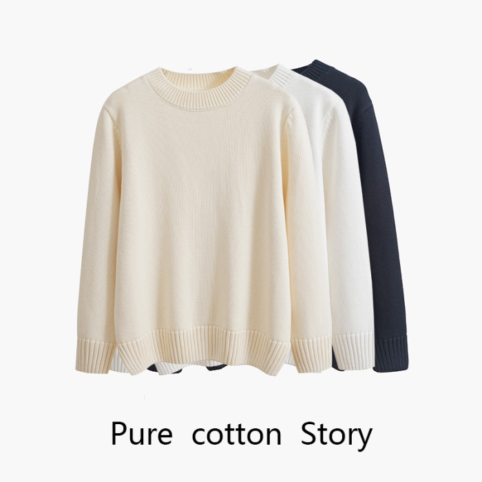 歐單 全棉100% 圓領毛衣女士套頭針織衫秋冬打底衫長袖寬松 厚款