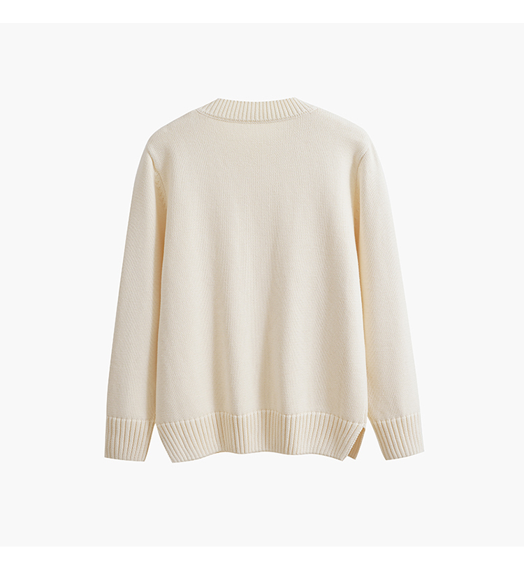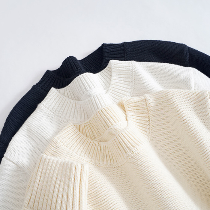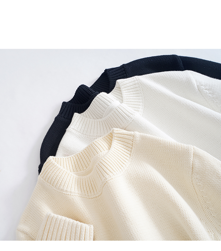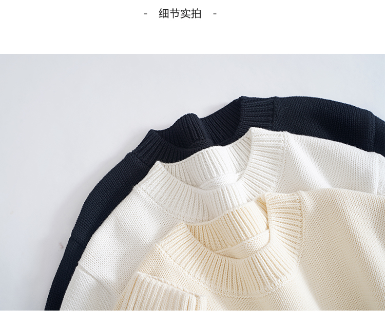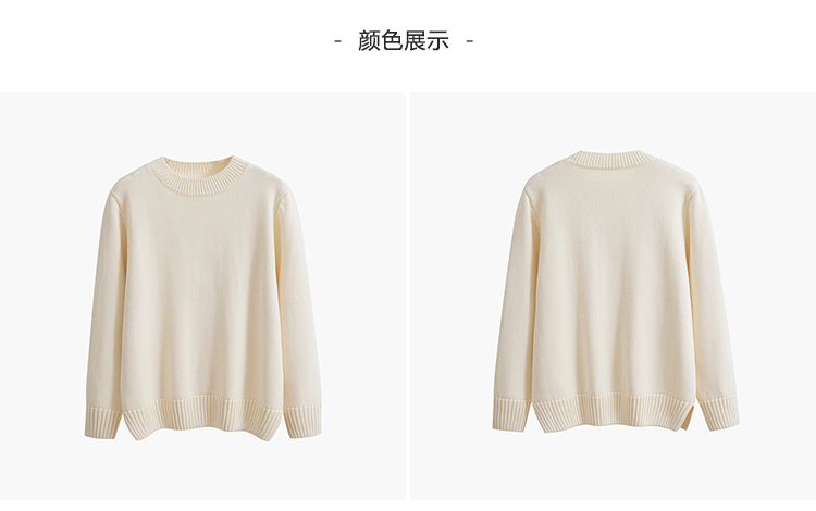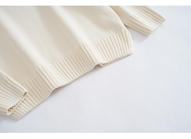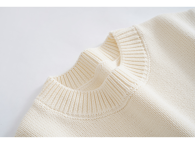歐單 全棉100% 圓領毛衣女士套頭針織衫秋冬打底衫長袖寬松 厚款