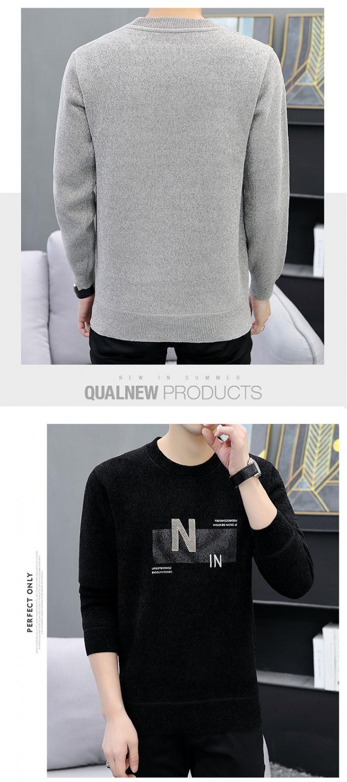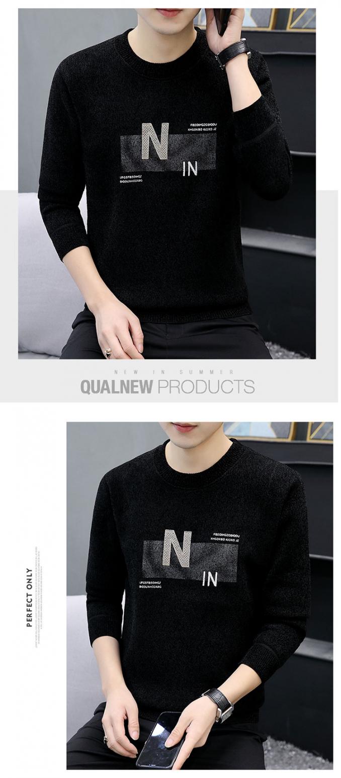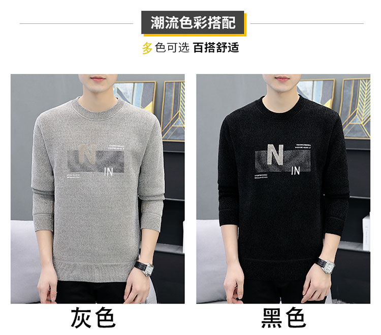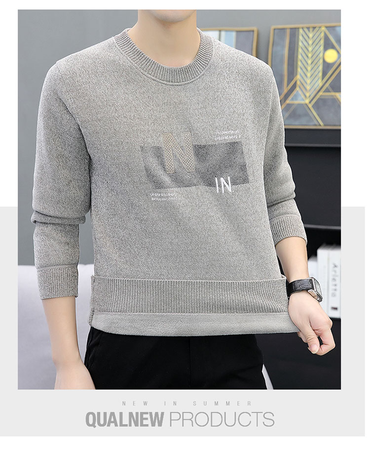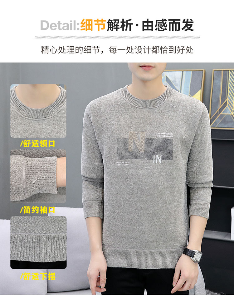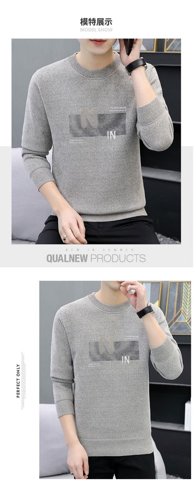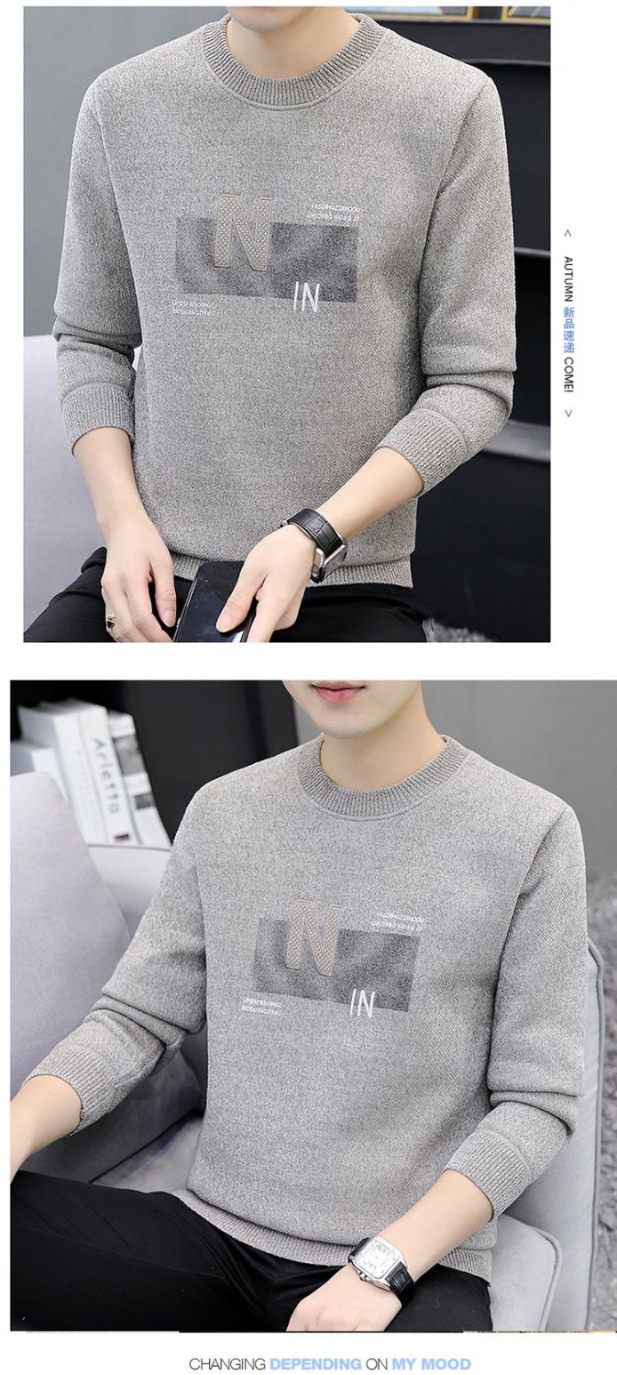 圓領毛衣男加絨加厚秋冬季一體絨針織打底衫男內搭冬裝提花羊毛衫