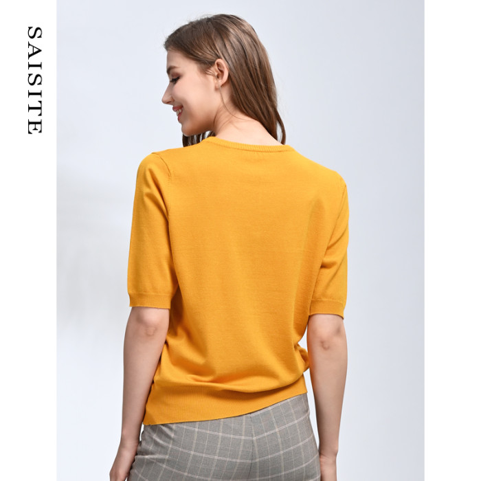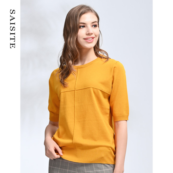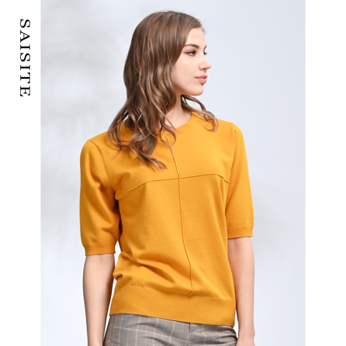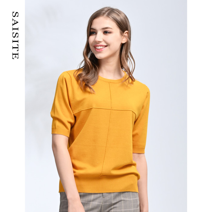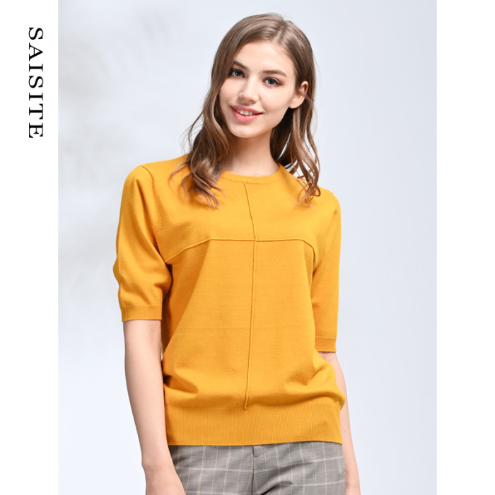 賽斯特女裝春夏中袖圓領百搭純色打底衫套頭針織衫 Z042