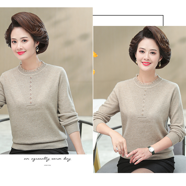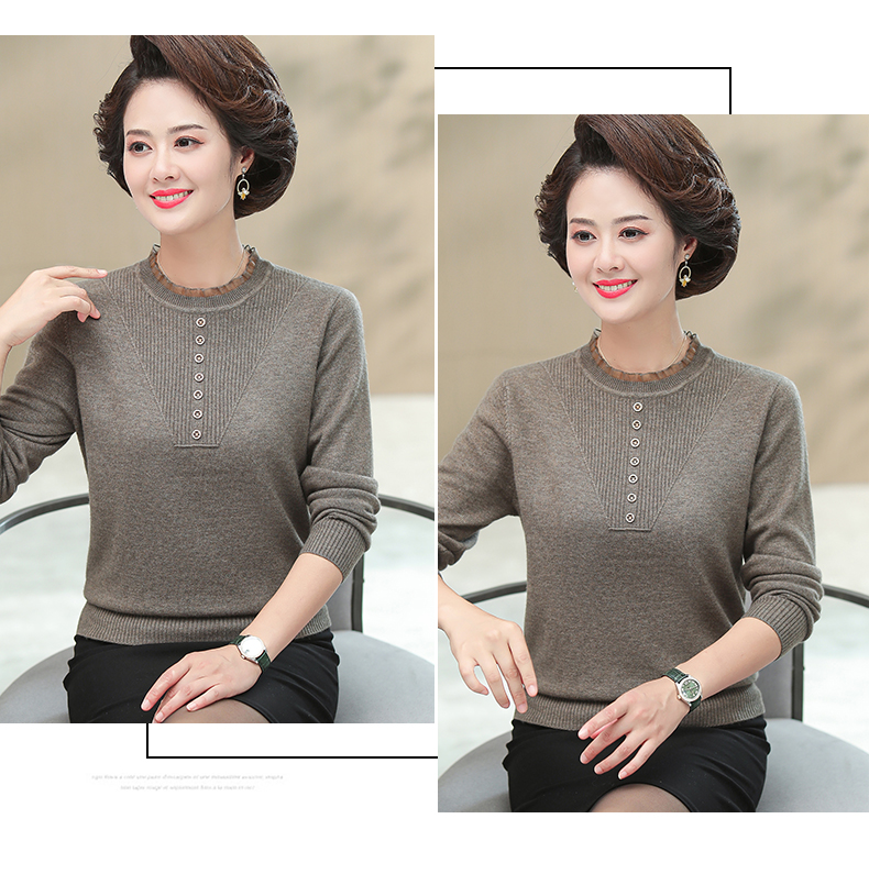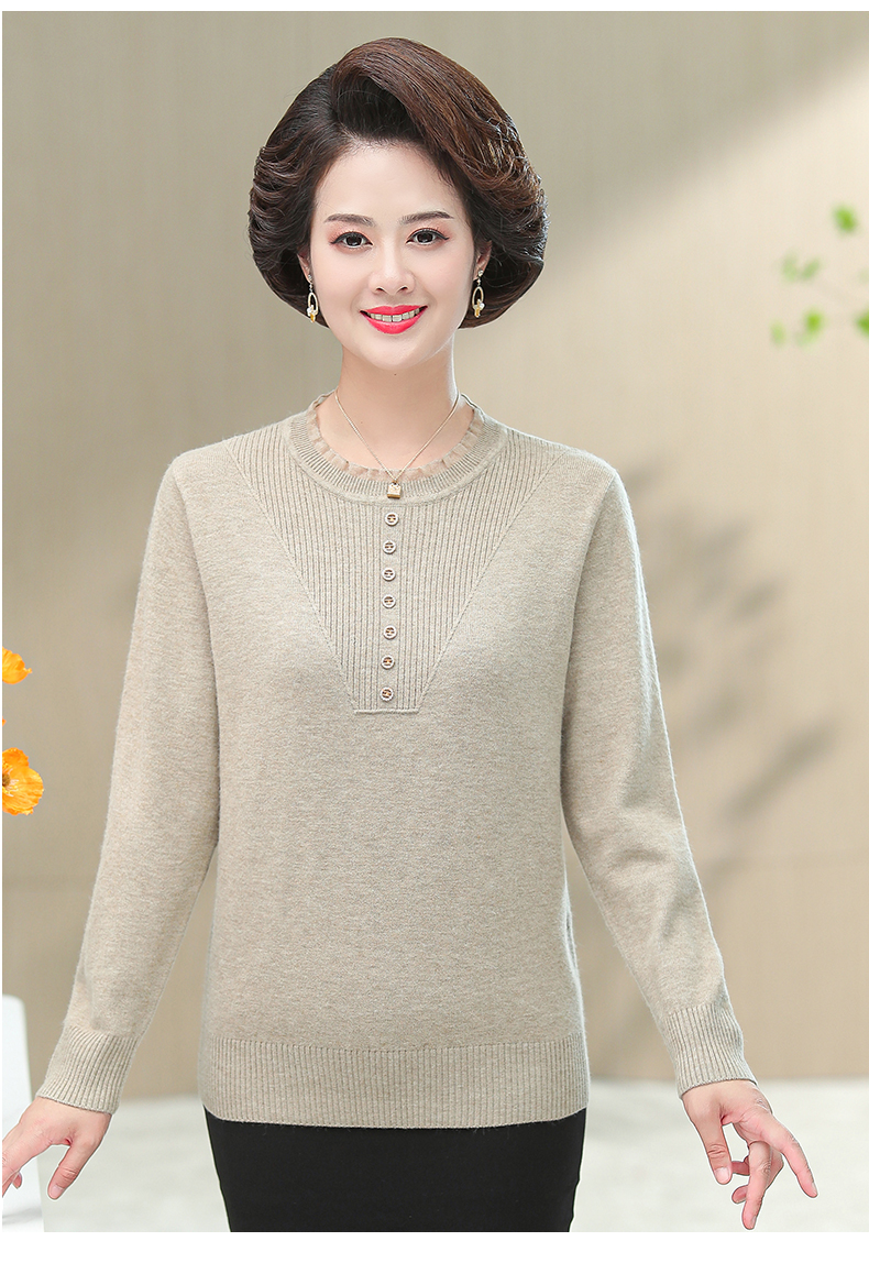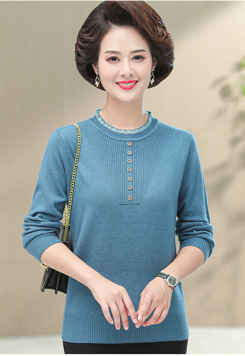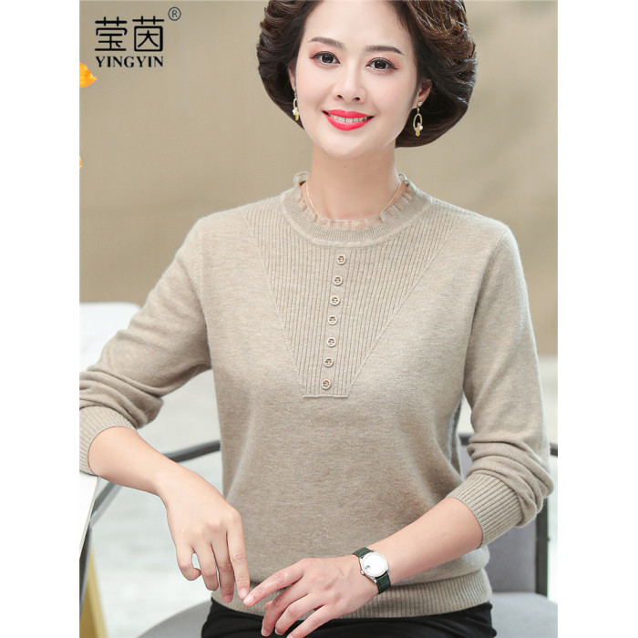 媽媽秋裝上衣洋氣針織衫中老年女春秋時尚打底衫50嵗中年長袖毛衣
