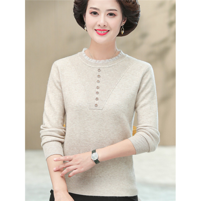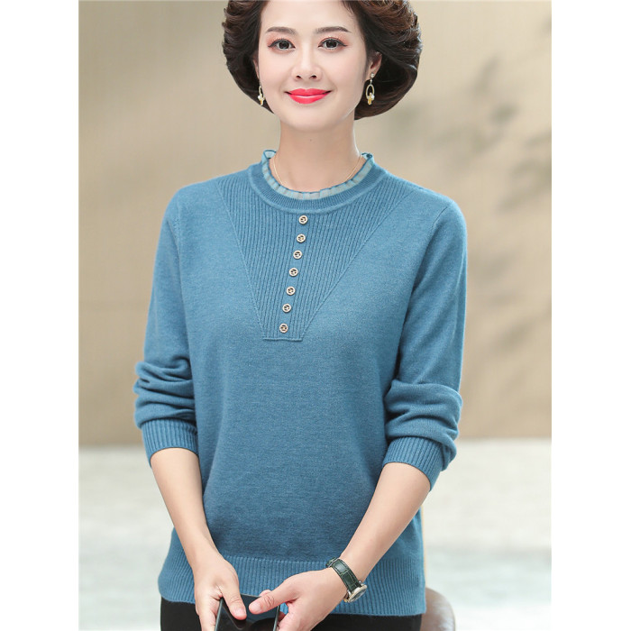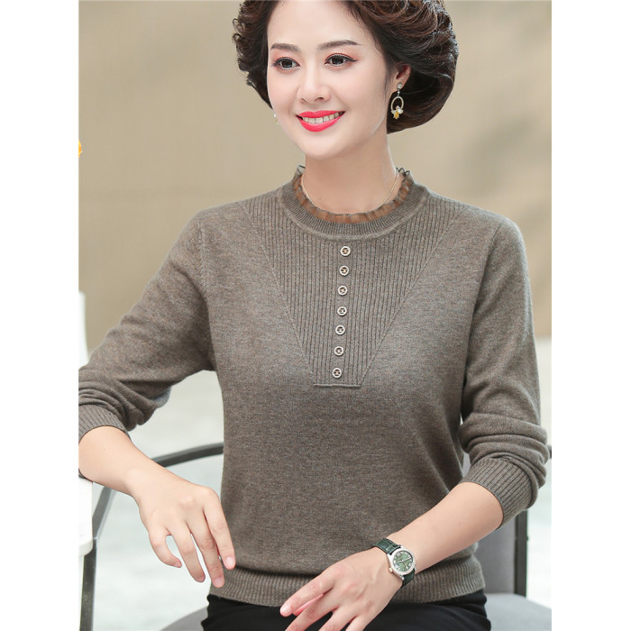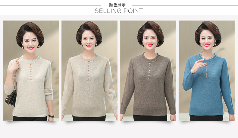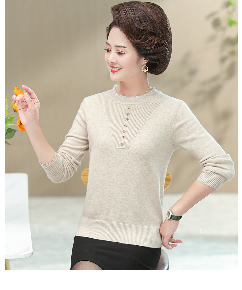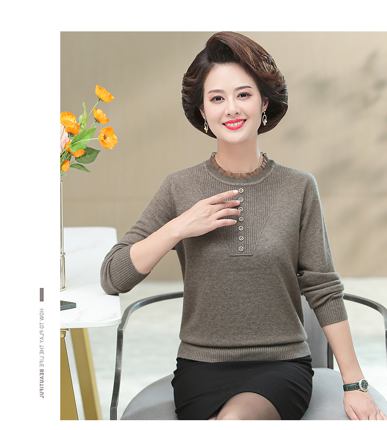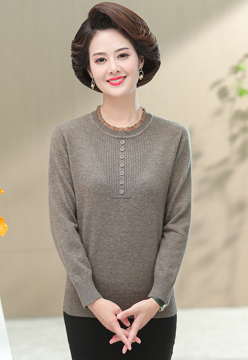 媽媽秋裝上衣洋氣針織衫中老年女春秋時尚打底衫50嵗中年長袖毛衣