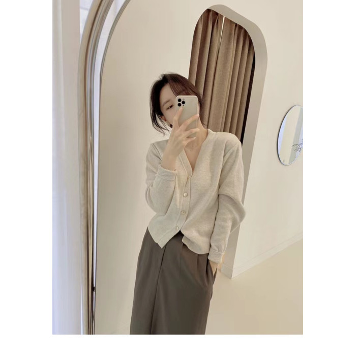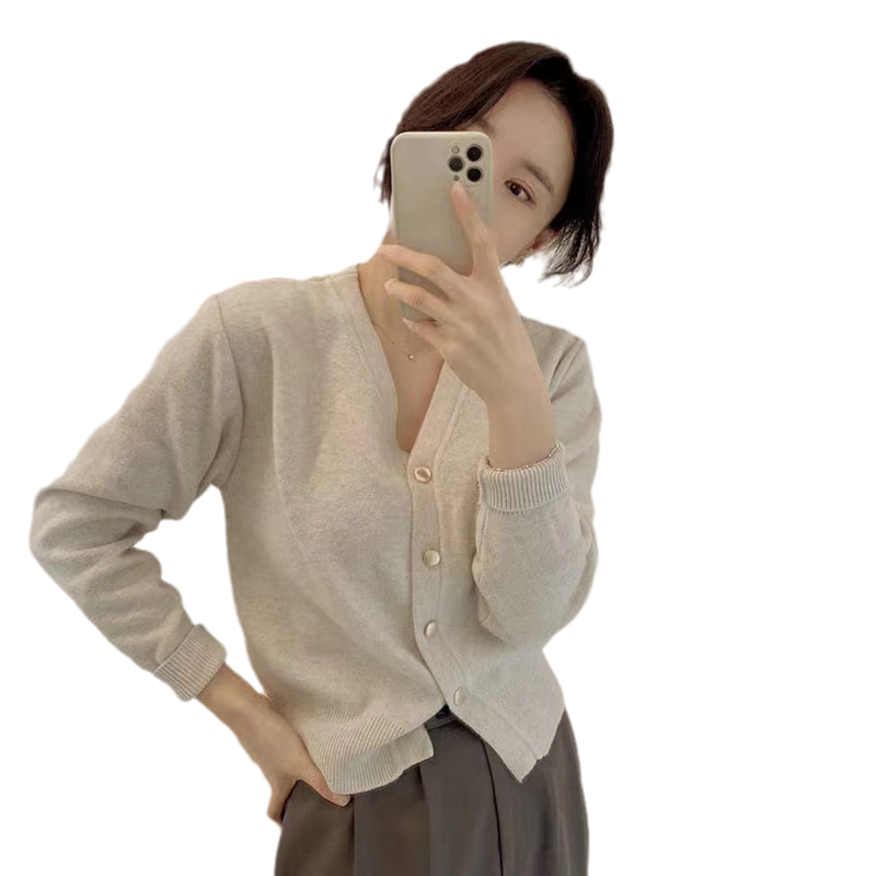 v領開衫外套毛衣女2025春秋新設計感小衆針織打底衫外搭薄款上衣