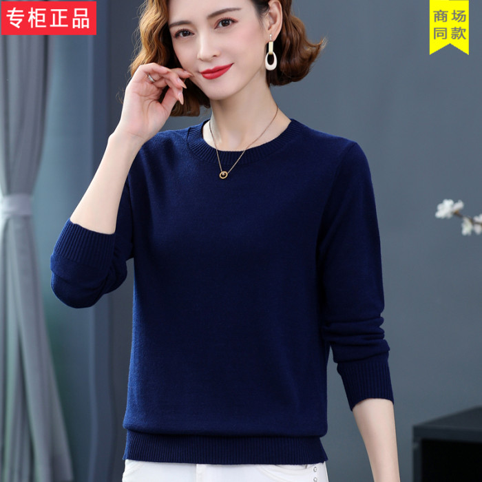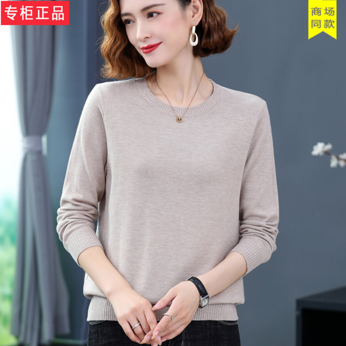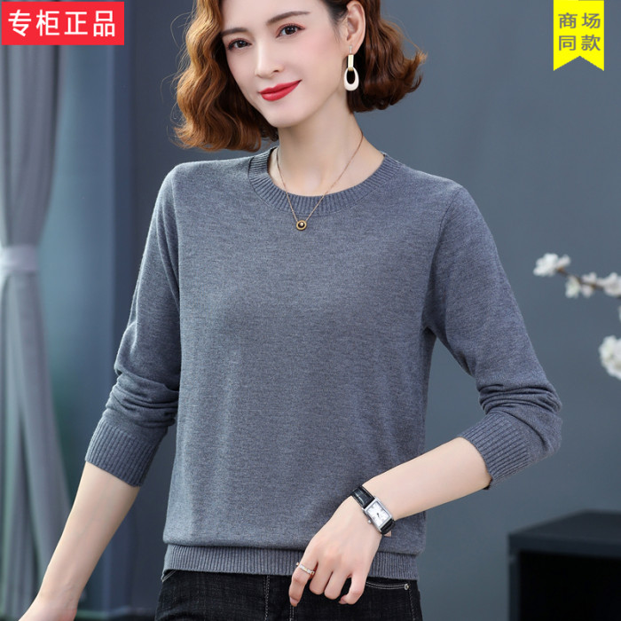 2024年羊毛衫女薄款內搭春秋新款寬松針織上衣套頭圓領毛衣打底衫