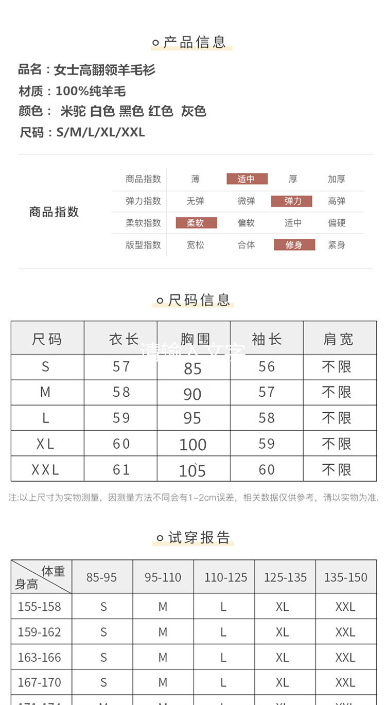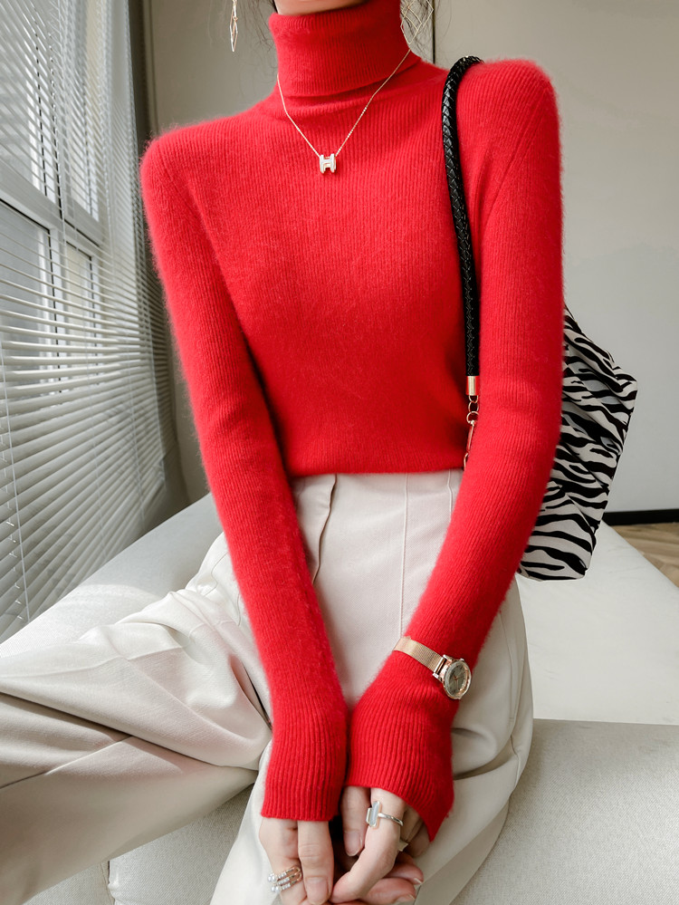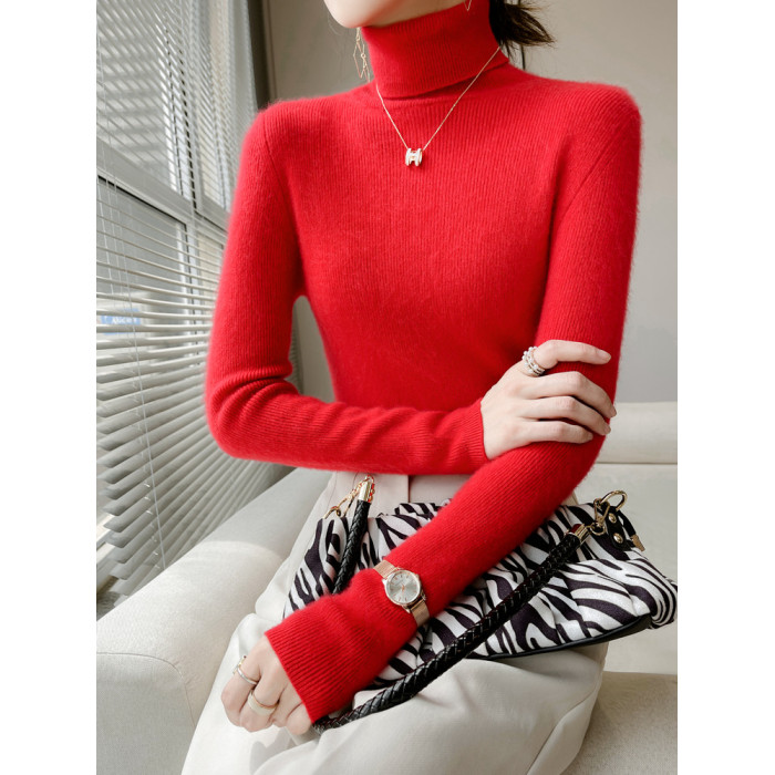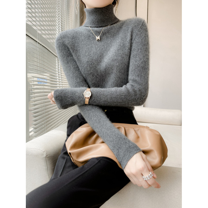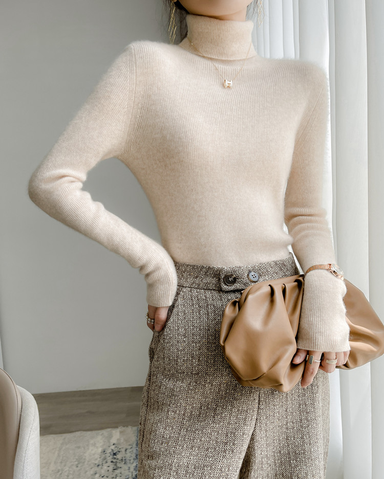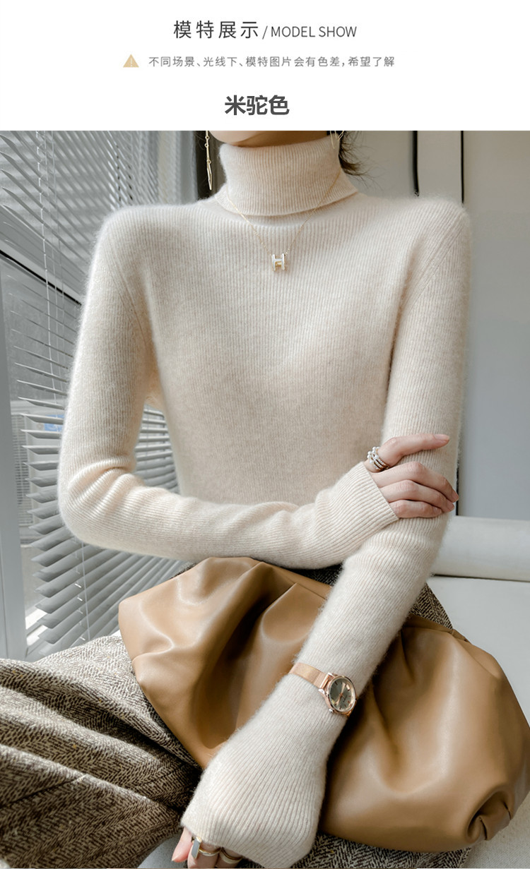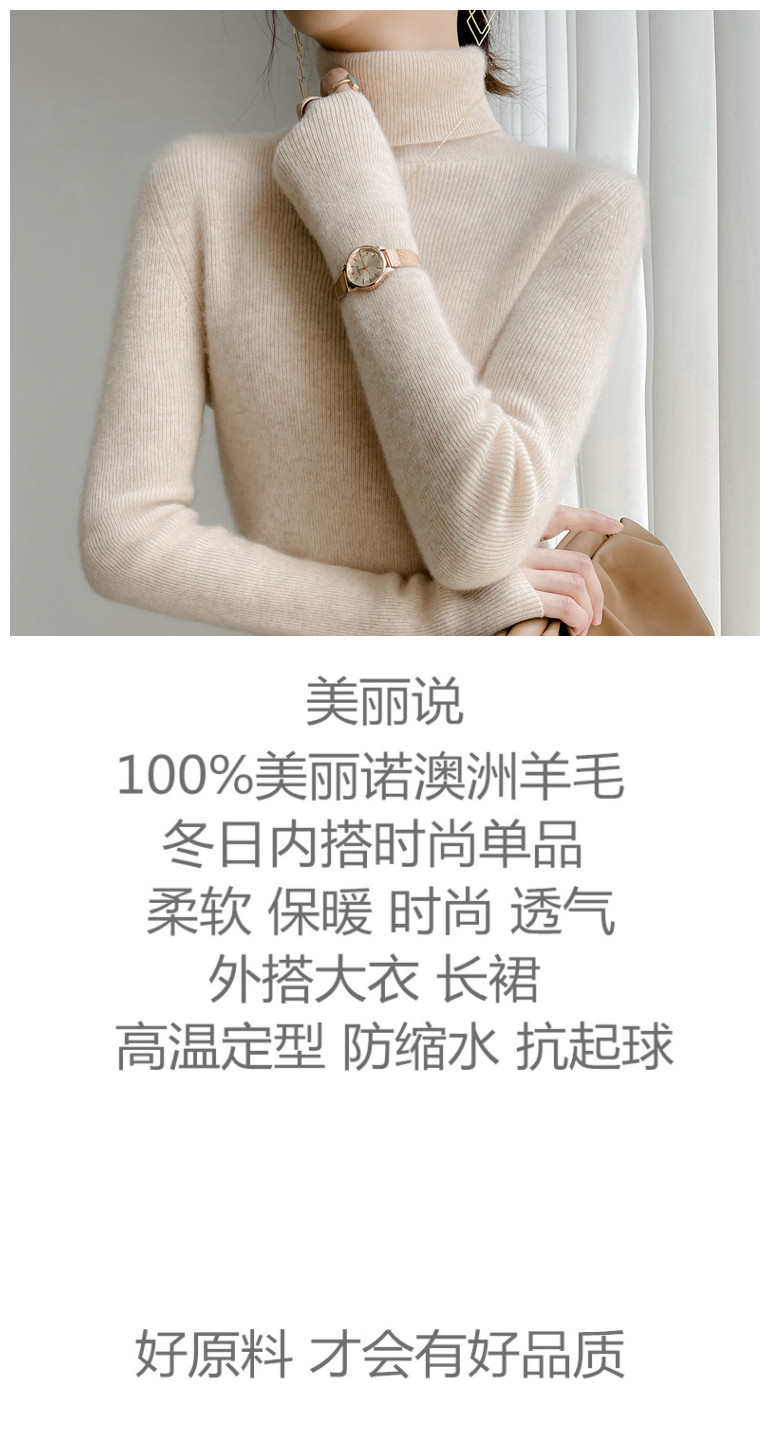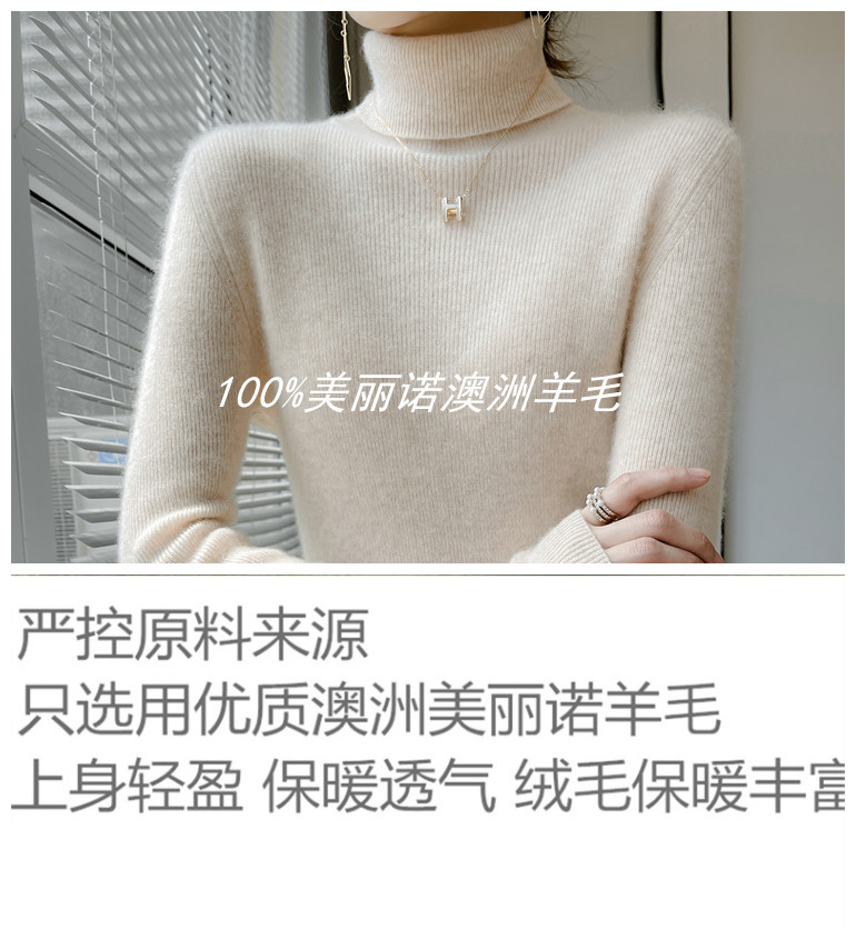 美麗諾100%純羊毛衫女高領羊絨衫修身毛衣女內搭針織打底衫冬加厚