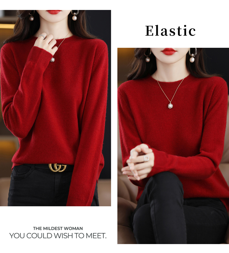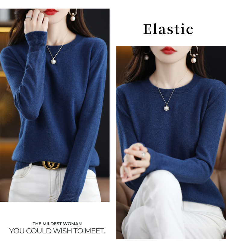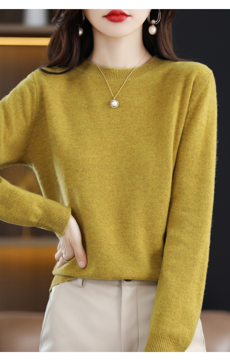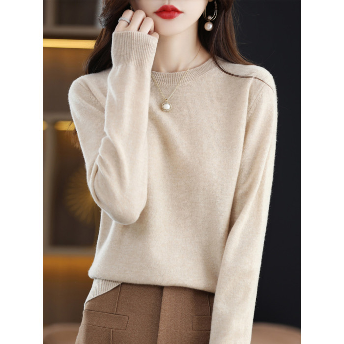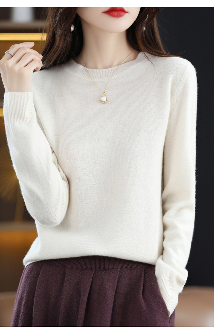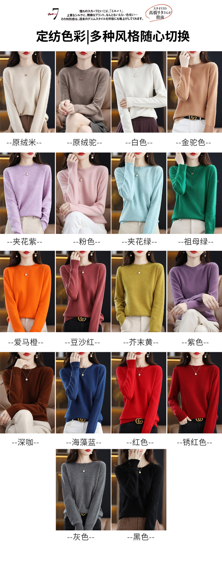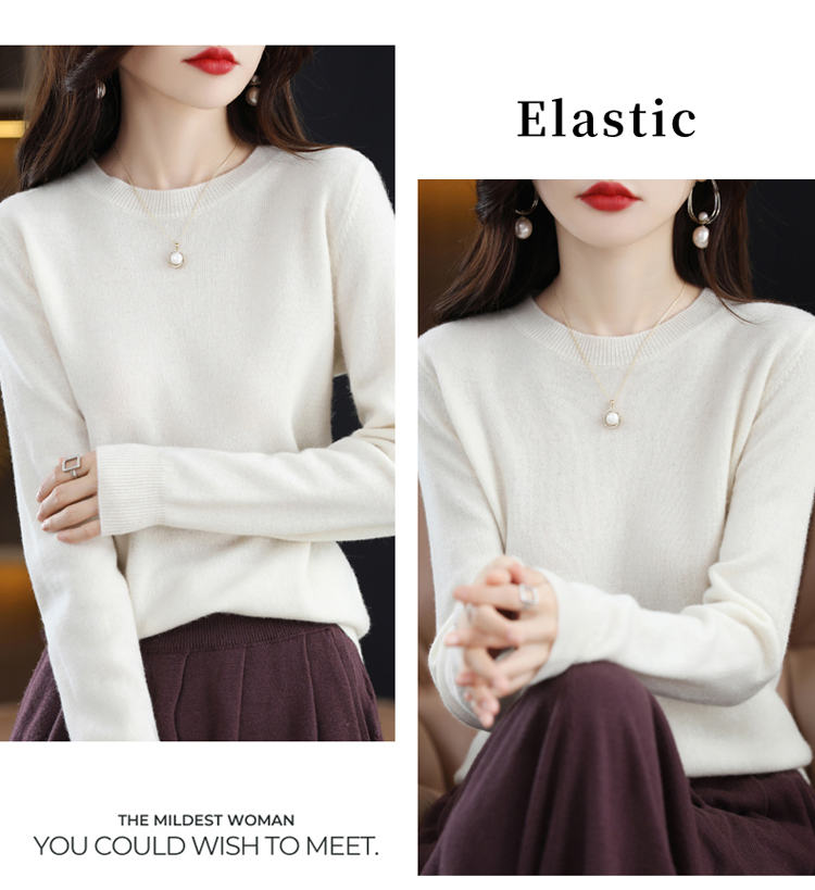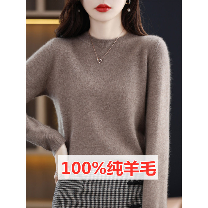2025年秋季新款100%純羊毛衫女針織打底衫圓領羊絨衫毛衣洋氣百搭