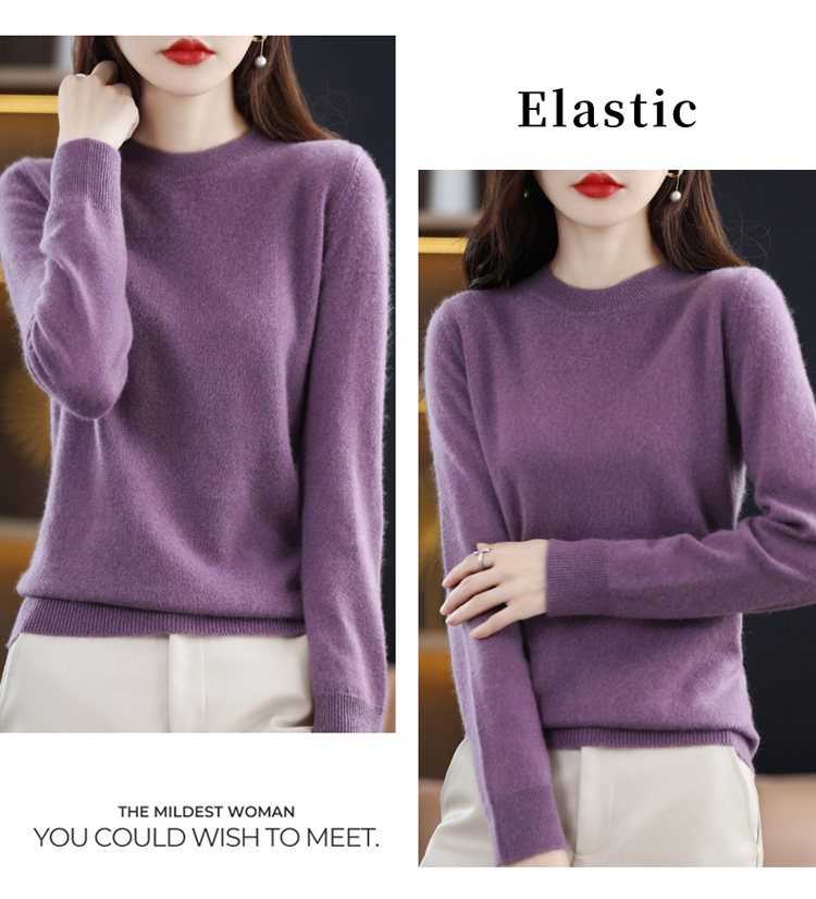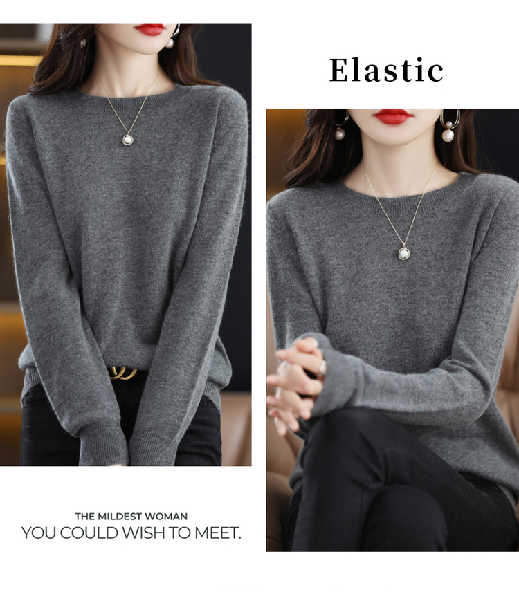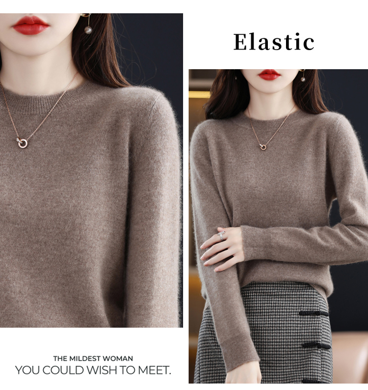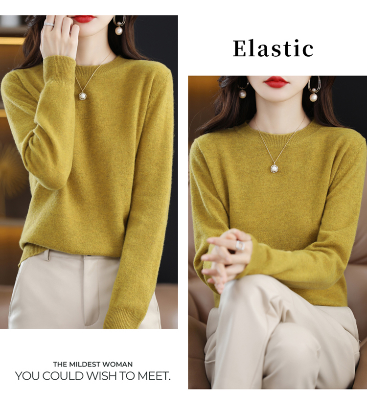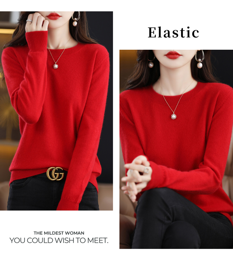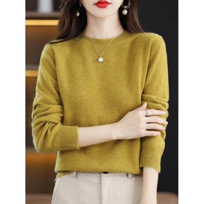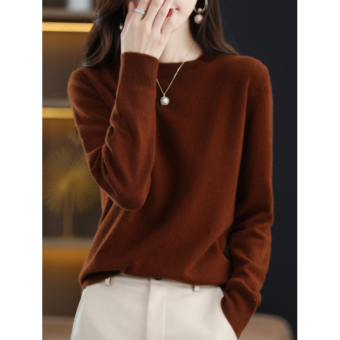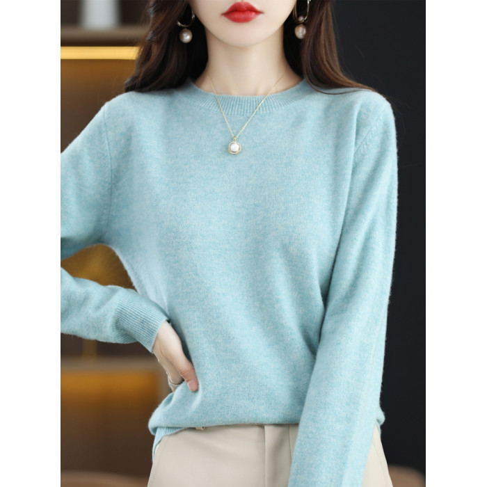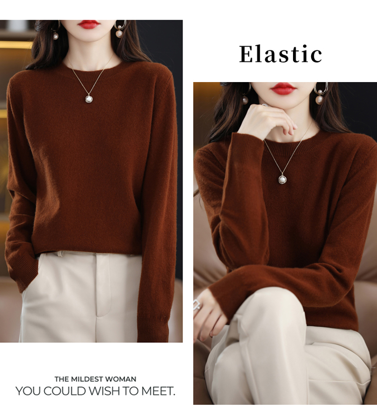 2025年秋季新款100%純羊毛衫女針織打底衫圓領羊絨衫毛衣洋氣百搭