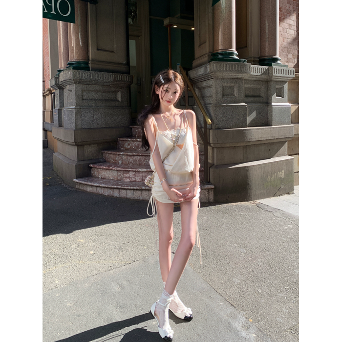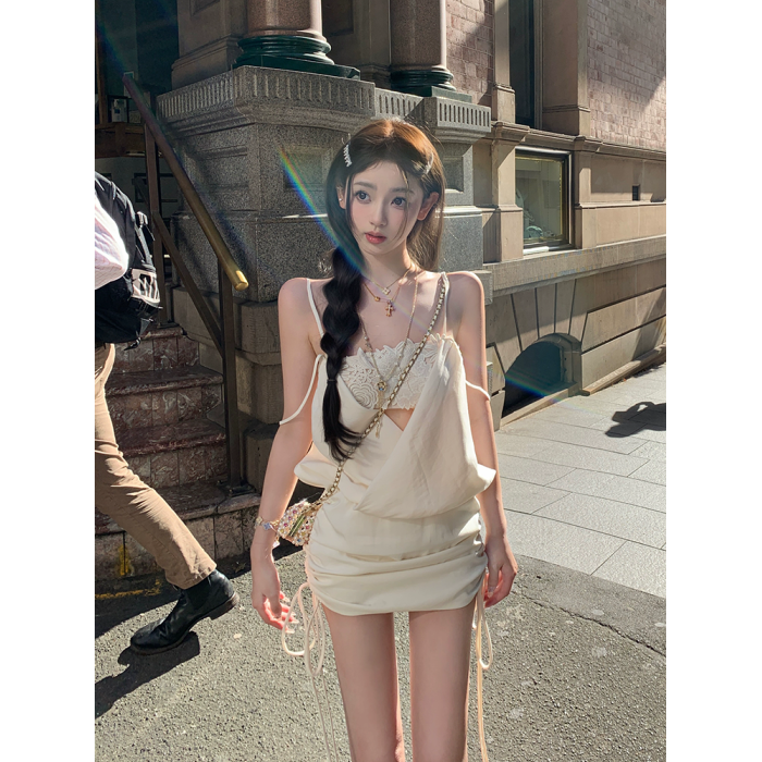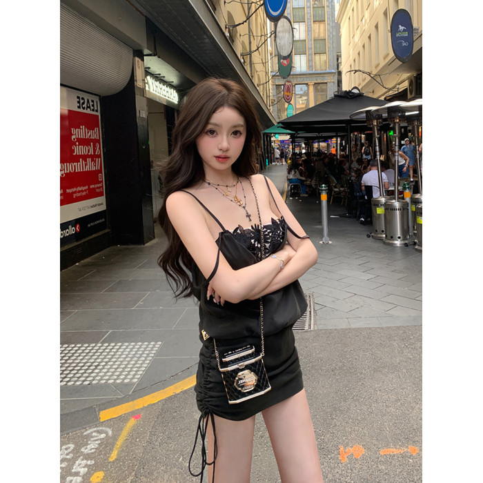春夏新款法式純欲氣質立體綉花吊帶連衣裙女小個子性感辣妹包臀裙