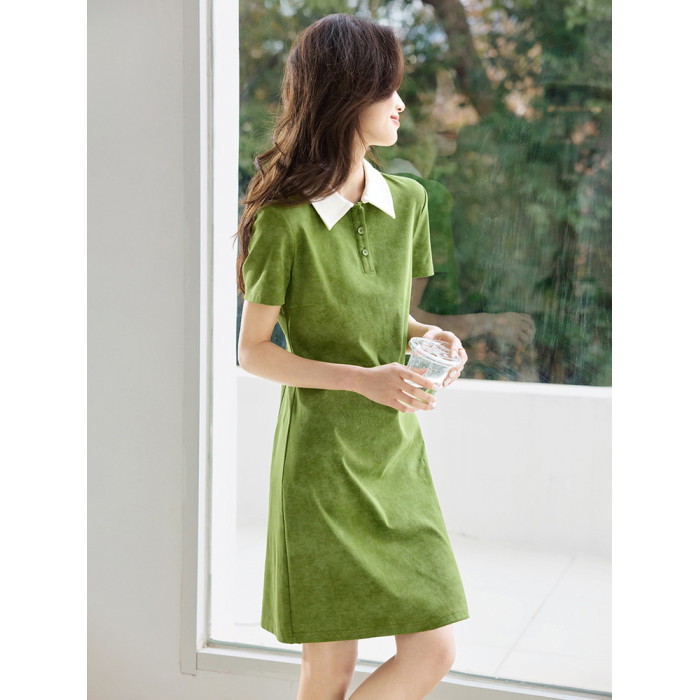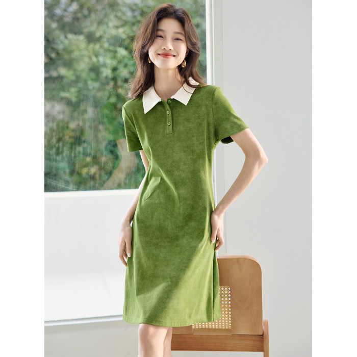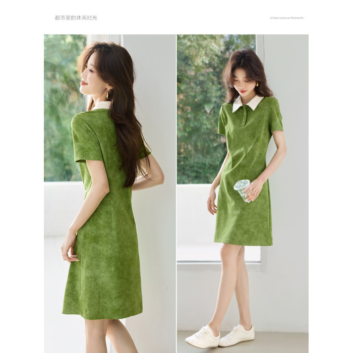沫晗依美休閒炒色暈染撞色POLO領連衣裙25夏季新款短袖時尚連衣裙