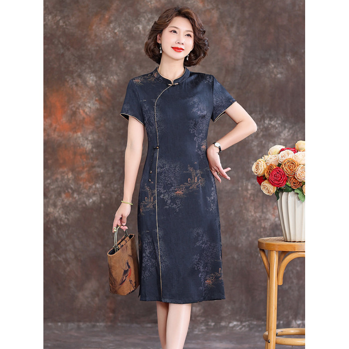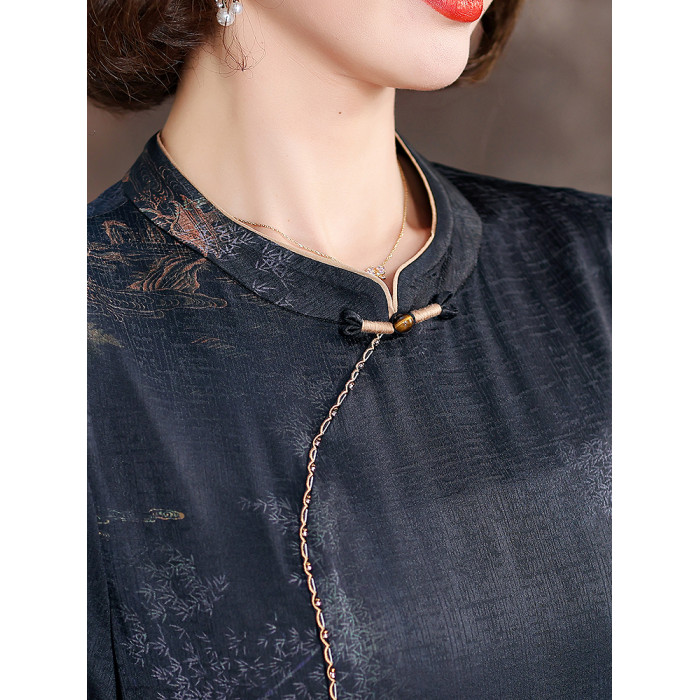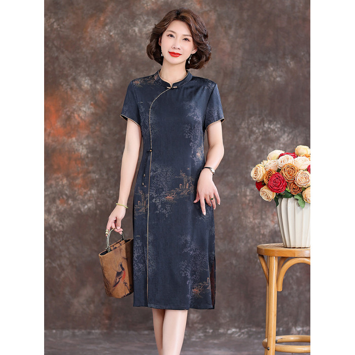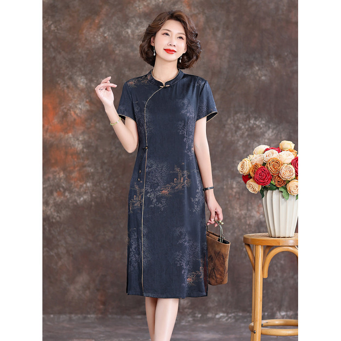 齊黛名牌大牌真絲連衣裙女2025春夏季新款改良旗袍裙新中式媽媽裙