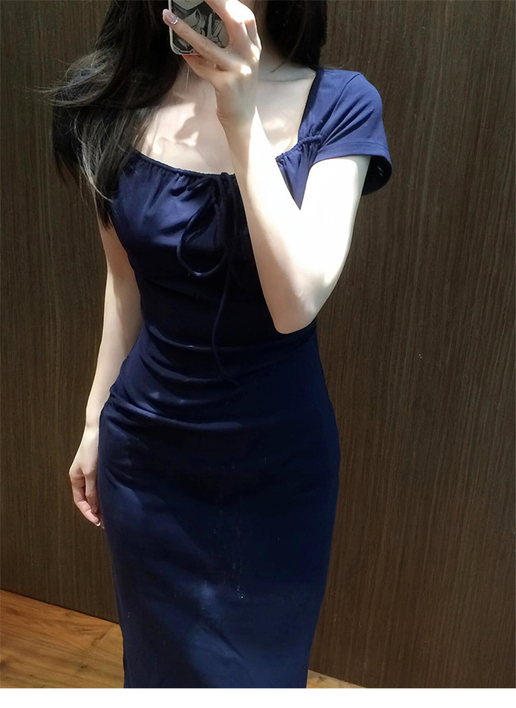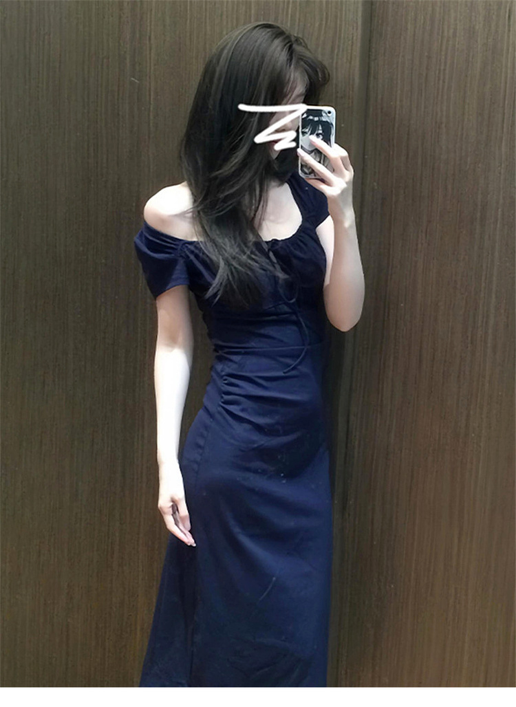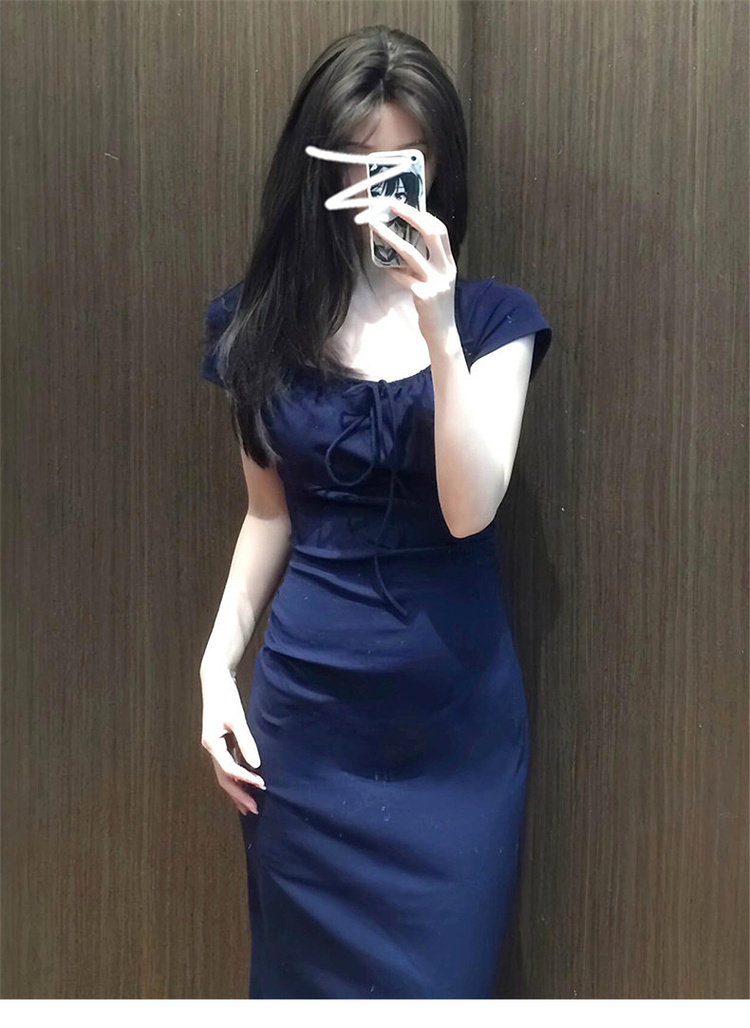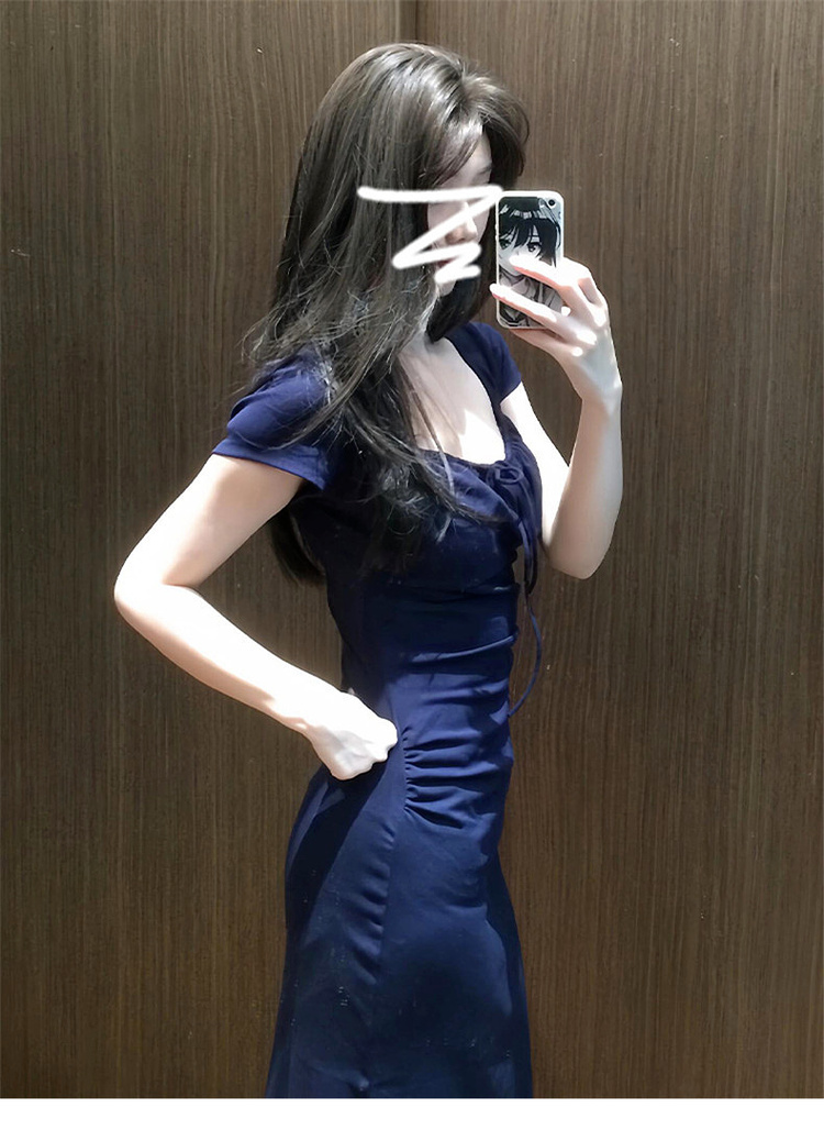 【藍色】【2025初夏穿搭/大方得體的裙子2025新款今年流行爆款/連衣裙/裙子女夏/夏日絕美/今年流行/巨好看/薄紗/獨特漂亮掐腰】
