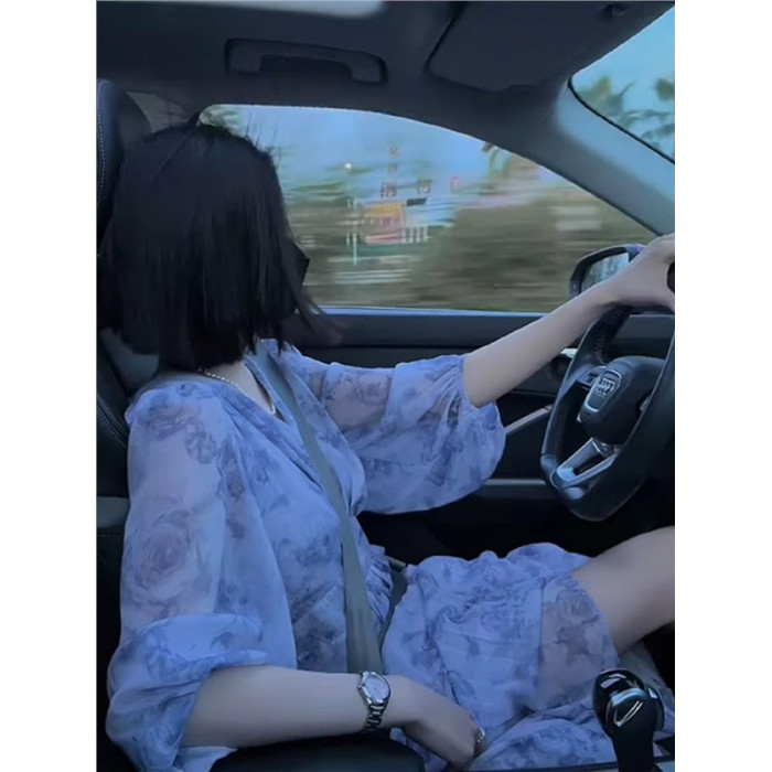 XZOXZO2025新款法式茶歇初戀女神範收腰顯瘦藍色碎花連衣裙女夏季