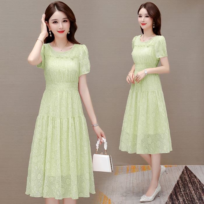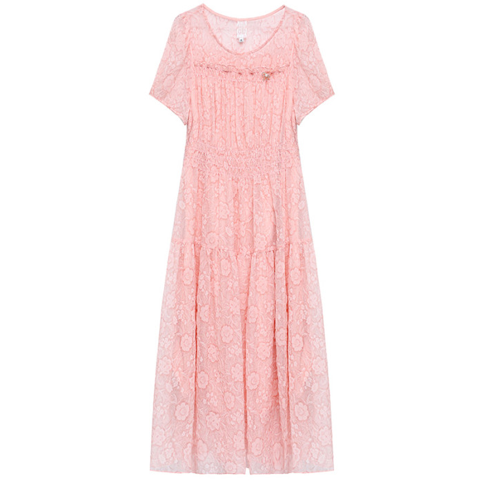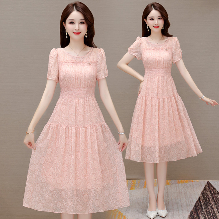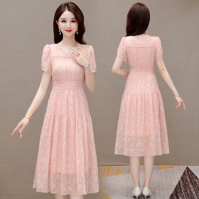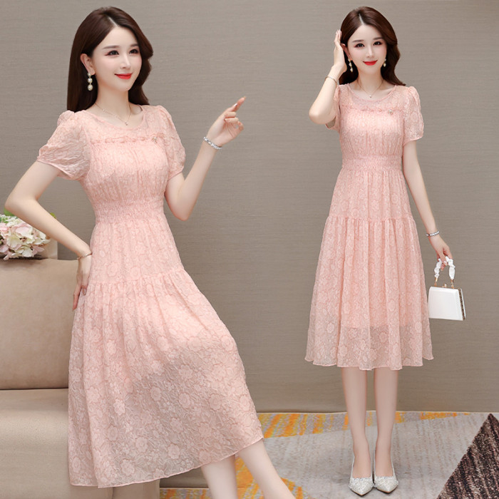 時尚雪紡連衣裙女2025夏新款高級精緻小個子洋氣修身網紗天絲裙子