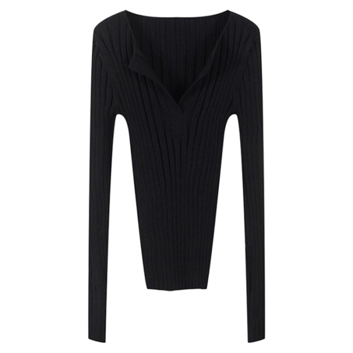 Tot 針織衫V領真絲羊絨基礎款打底衫上衣內搭百搭秋冬女羊毛