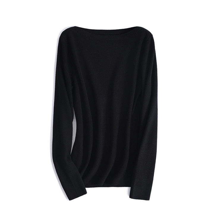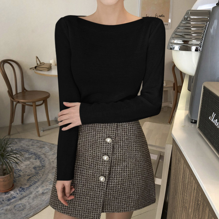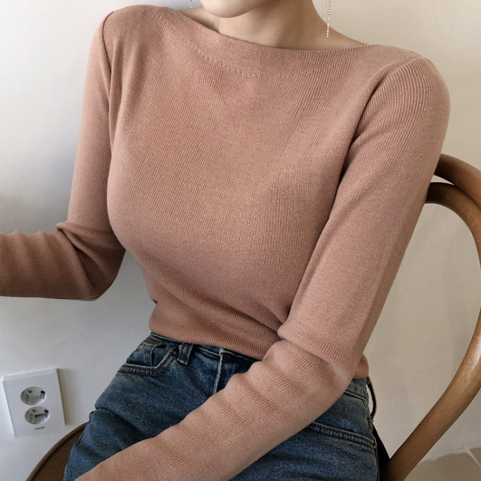 一字領長袖針織衫毛衣女2025春秋新款套頭百搭修身緊身打底衫女士