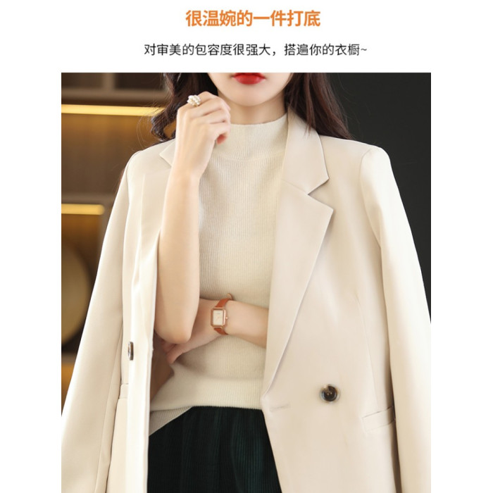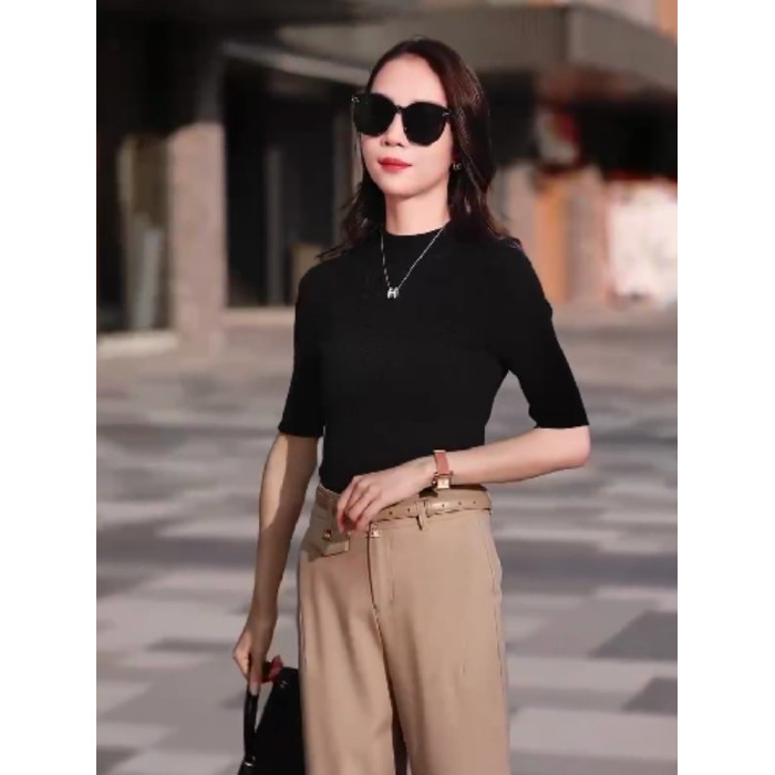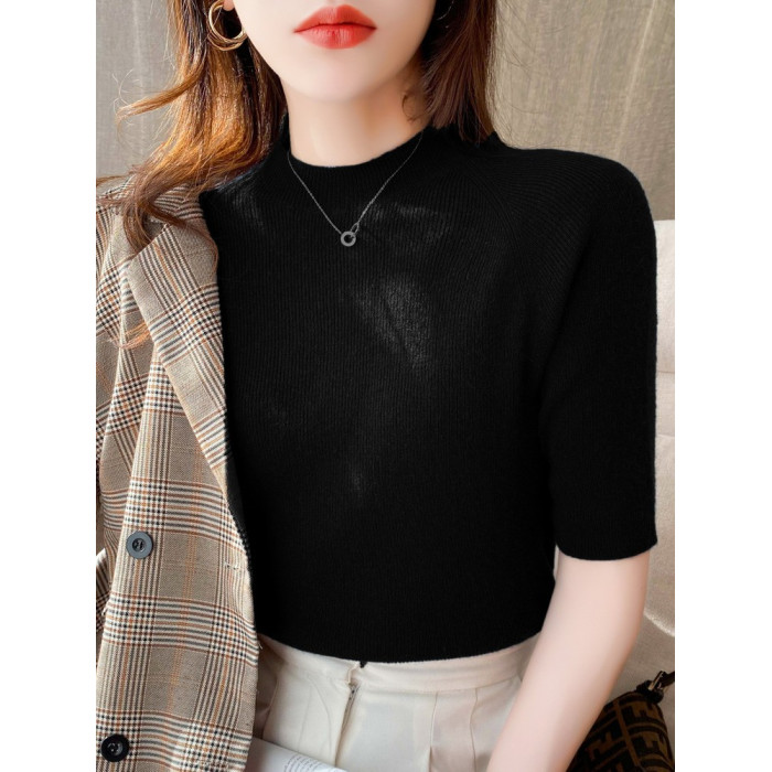 西裝打底衫女內搭半高領五分袖黑色修身薄款針織衫高級感中袖毛衣