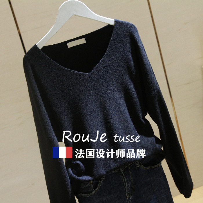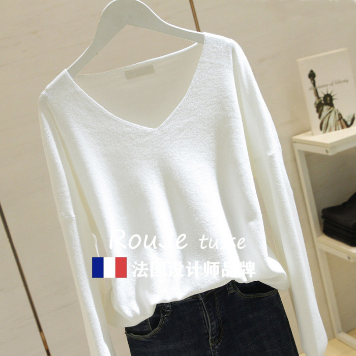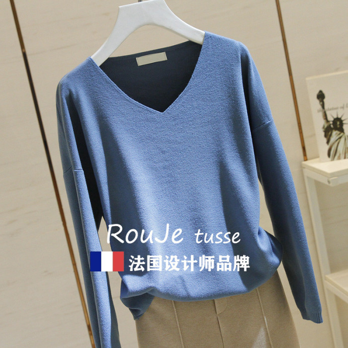 專櫃針織衫女套頭短款2025春季款韓版寬松長袖V領毛衣打底衫上衣