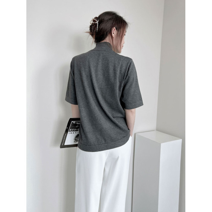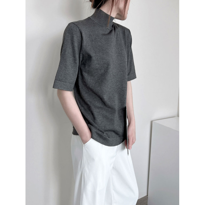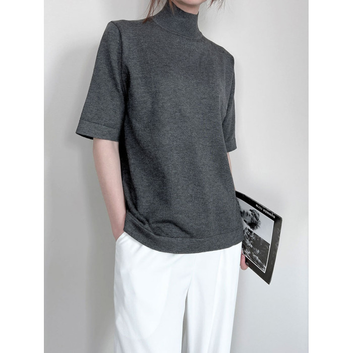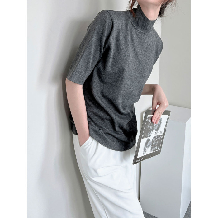 春秋冬寬松大碼半高圓領五分袖毛針織衫內搭打底衫半袖純色女上衣