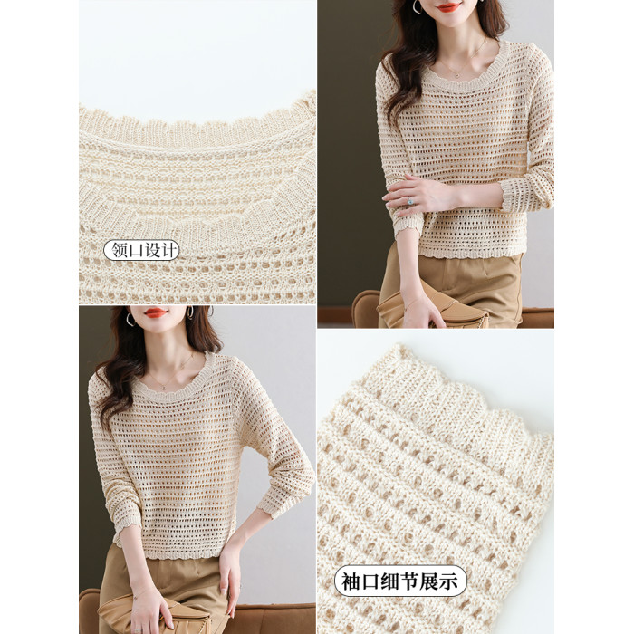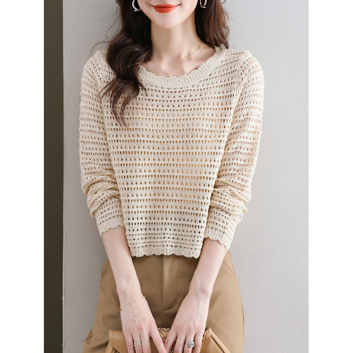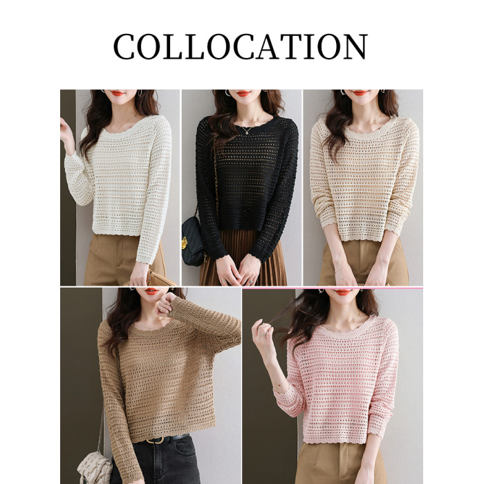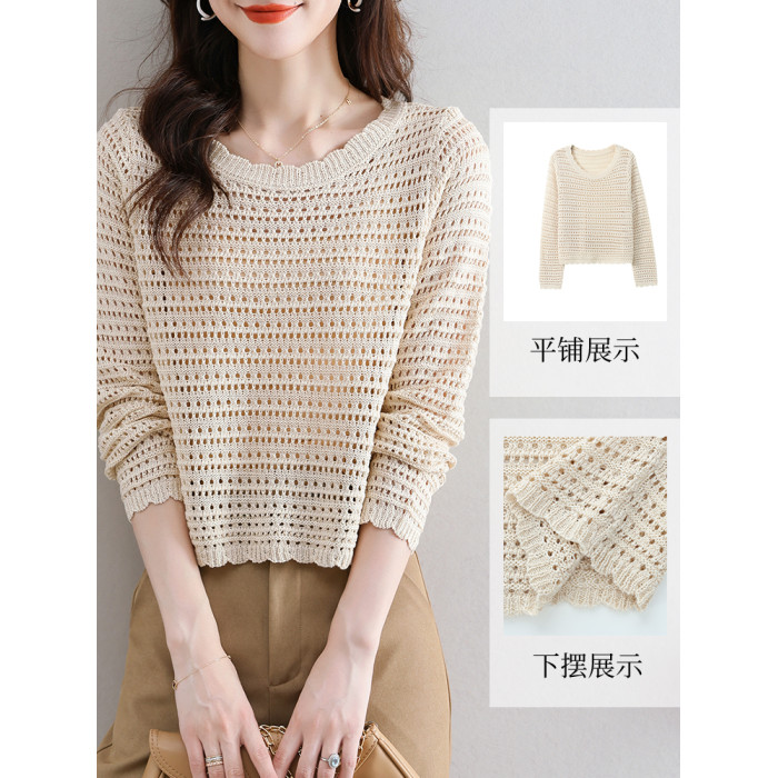 秋季高腰鏤空針織衫女短款秋裝2025年新款薄款長袖上衣春秋打底衫