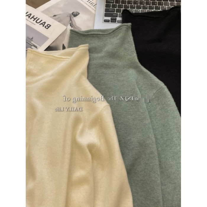 湖水綠【2023早秋新款毛衣/韓系/嬭系穿搭早秋/流行/穿搭/漂亮/溫柔/獨特/少女/甜辣小上衣】 打底衫女秋冬高級感